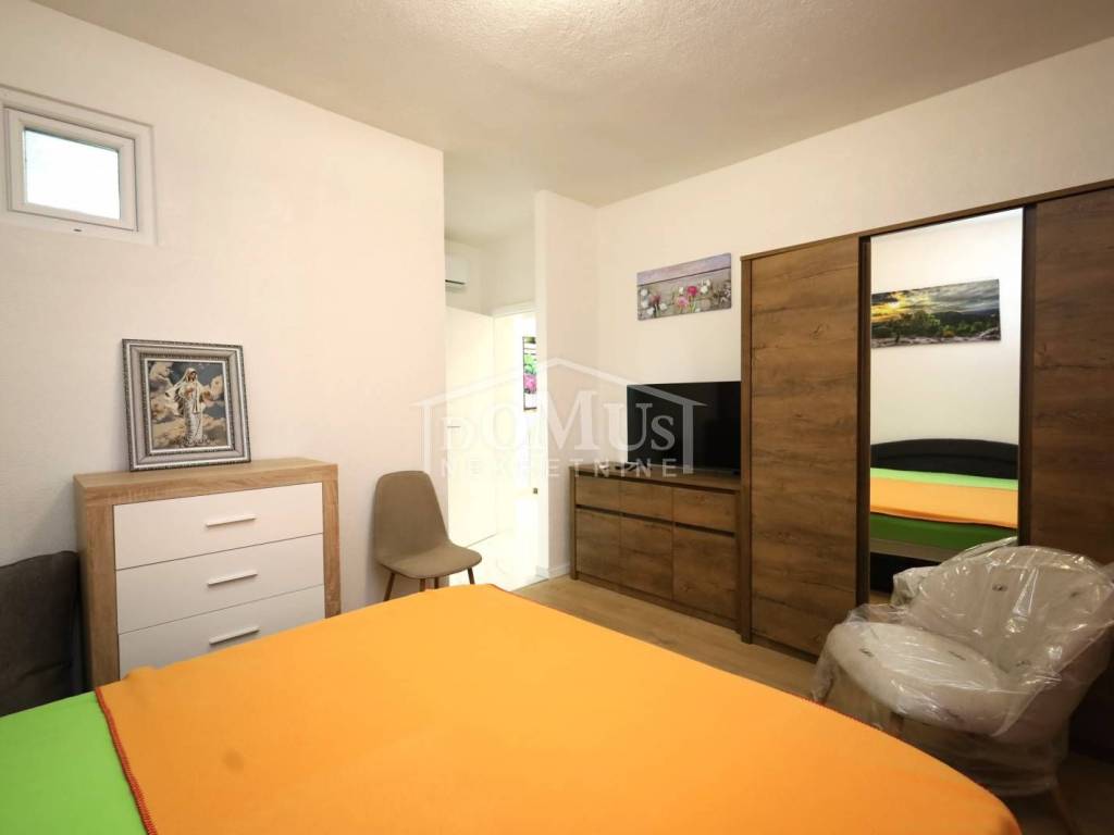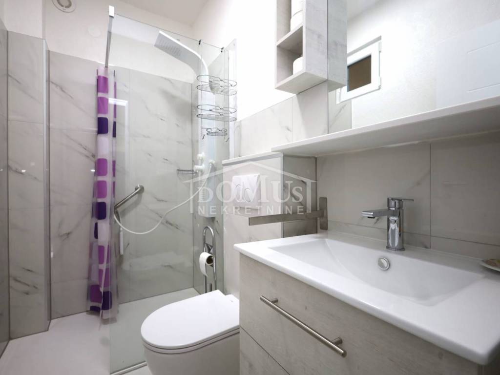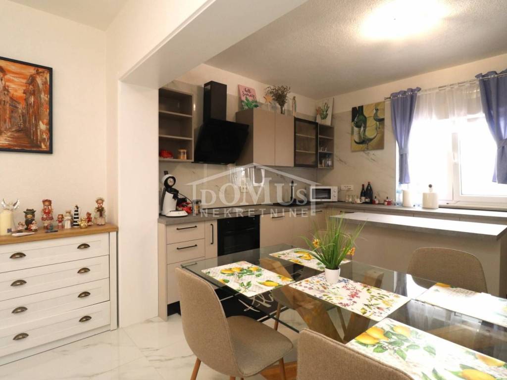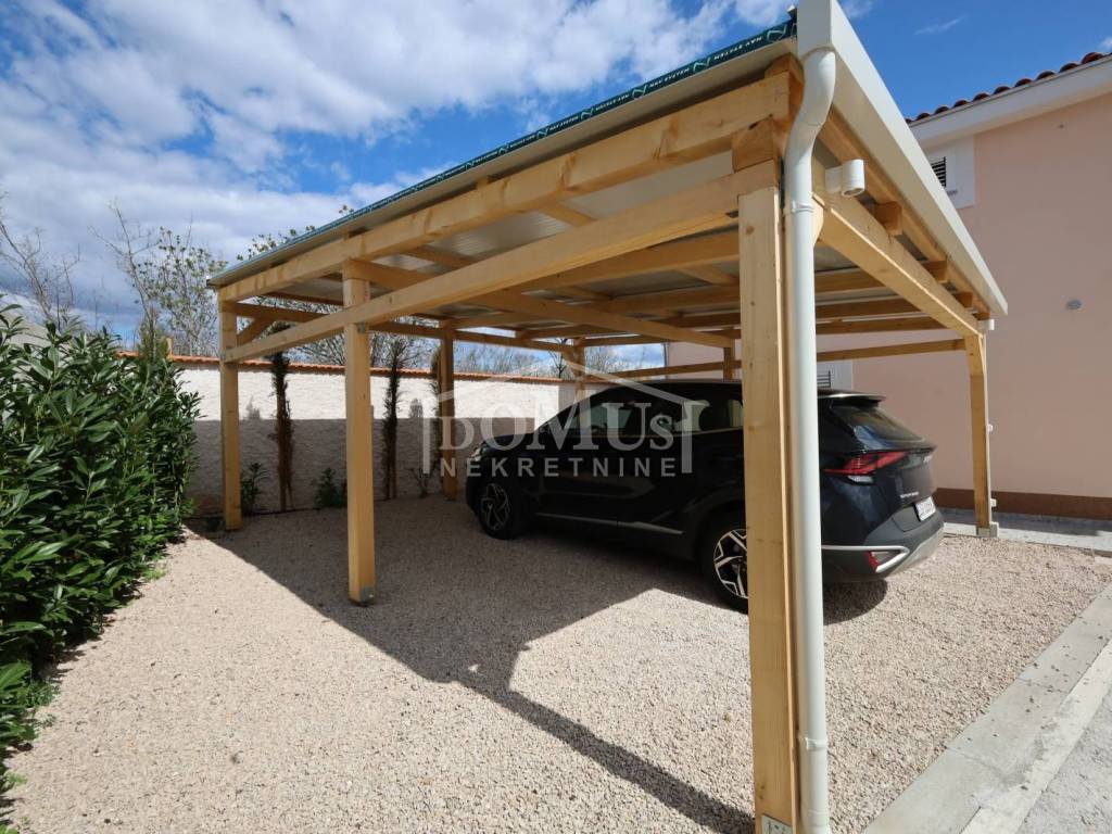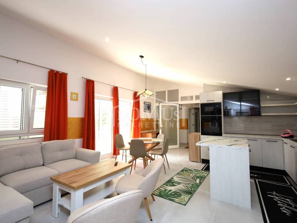 Beautiful house with a swimming pool on a plot of 927m2, in a quiet location. The house is spread over two floors: ground floor + first floor with a total of 216.60 m2 of usable area. On the ground floor there is an apartment with 119.84 m2 consisting of a kitchen with a dining room, a living room with access to a covered glazed terrace, two bedrooms, one of which has its own bathroom and a separate bathroom. An internal staircase leads to the first floor where there is a second apartment with a total of 96.76 m2 of usable area consisting of internal stairs, a hallway, two bedrooms, two bathrooms, a kitchen with a dining room and a comfortable living room with access to a large uncovered terrace. The yard is fenced, the property is adapted for people with disabilities, and has video surveillance. An integral part of this beautiful property also includes a heated swimming pool 10m x 4m, a sunbathing area, a gazebo behind which there is a wine cellar, and next to the gazebo there is an outdoor fireplace, a machine room and a storage room. The yard is beautifully decorated with Mediterranean plants, while the interior is of modern design. Behind the house there is a garden house and covered parking. The distance to the beach in Pirovac is 14 km.