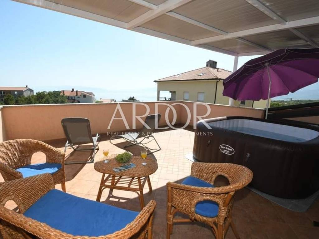 Fully equipped and furnished apartment of 100 m², with a spacious 30 m² terrace offering a spectacular view of the Kvarner Bay - the perfect place for a morning coffee or a romantic evening under the stars.