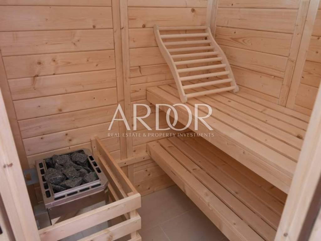 The apartment consists of a modern kitchen, dining room, comfortable living room, two bedrooms and a luxurious bathroom with a Finnish sauna. There is a private hydromassage pool on the terrace that further increases the level of pleasure.