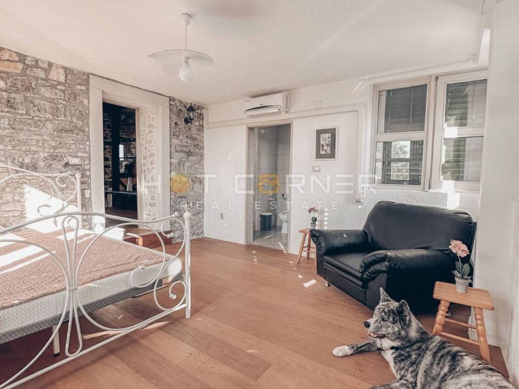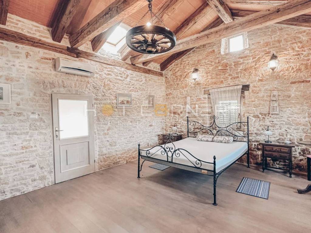 The house boasts two bedrooms, one located on the first floor and the other on the second floor. These bedrooms provide private retreats for rest and relaxation, offering the perfect escape from the world outside. Wooden beams and rustic details add to the authentic Istrian ambiance.