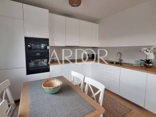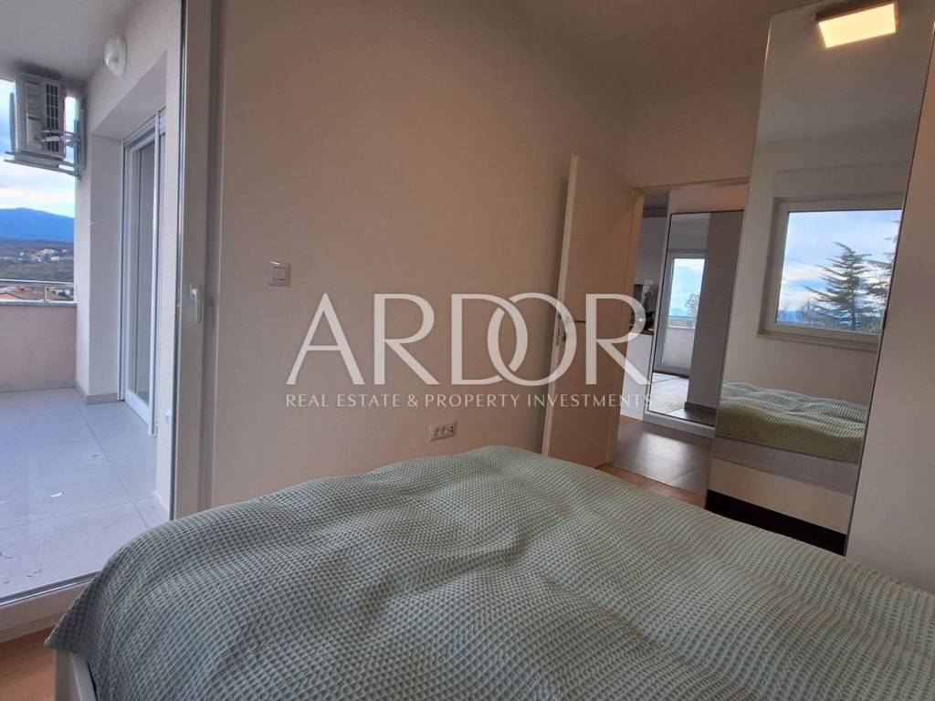 The apartment consists of a spacious living room connected to the kitchen and dining room, two bedrooms and a bathroom. There is a large balcony that can be accessed from the living room and one bedroom. The space is bright, pleasant and all rooms have an orientation towards the sea with a view of Učka.