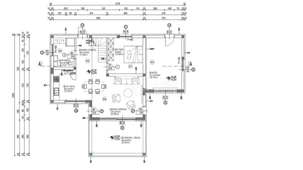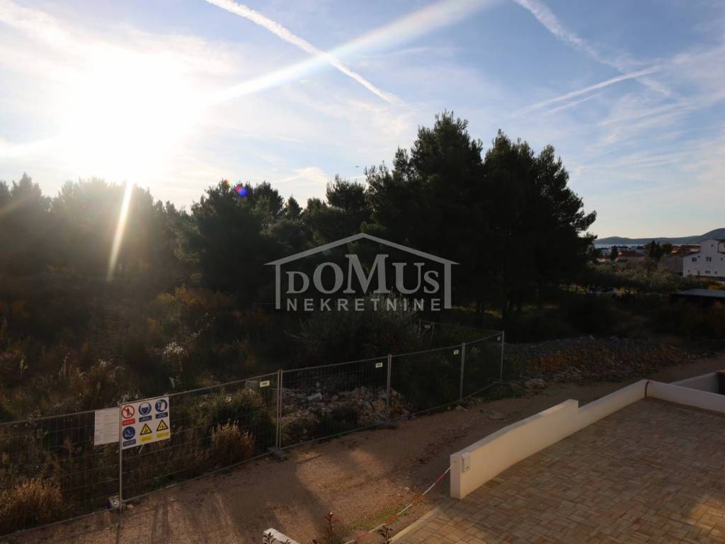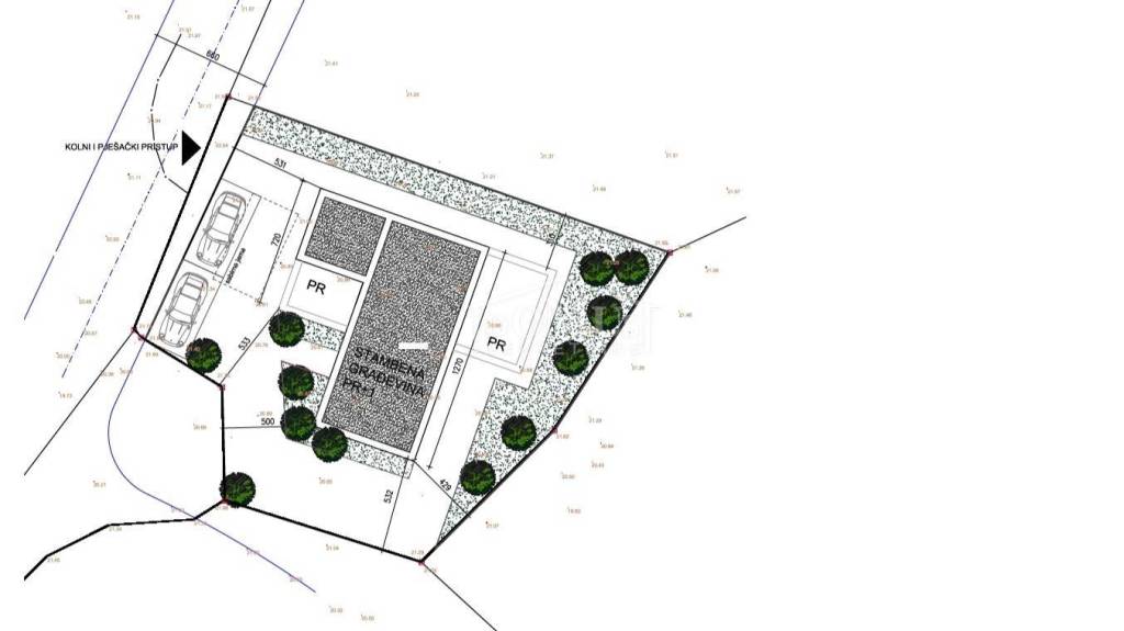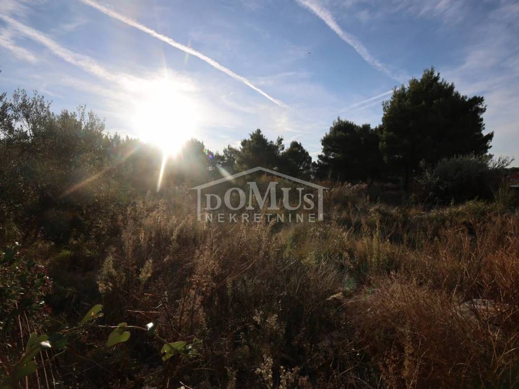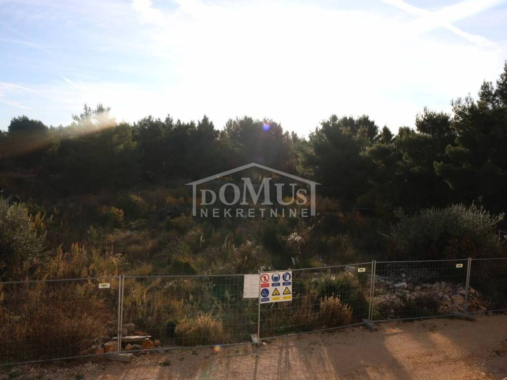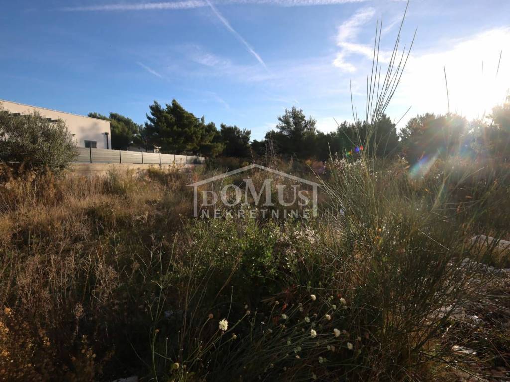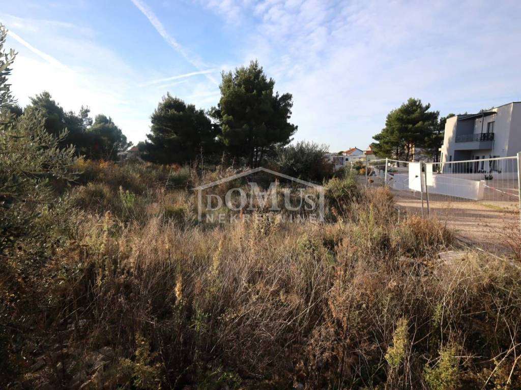 Vodice, in a quiet location, an attractive building plot of 463 m² situated in the M-zone – designation 1.3. The land is flat and undeveloped, with a polygonal shape. The plot dimensions are approximately 24.39 m x 19.65 m. Public infrastructure is located about 20 m from the plot, the access road is not yet physically developed, and the distance to the asphalt road is 70 m. All utility contributions have been paid, and the construction site has been registered, allowing the start of construction without delay. The plot is 1,000 m from the town centre and 1,250 m from the arranged beach.