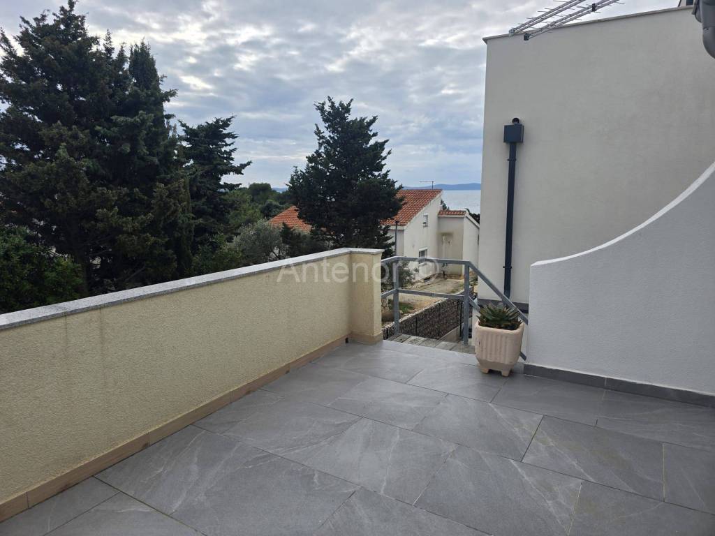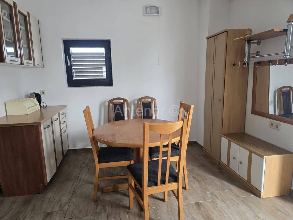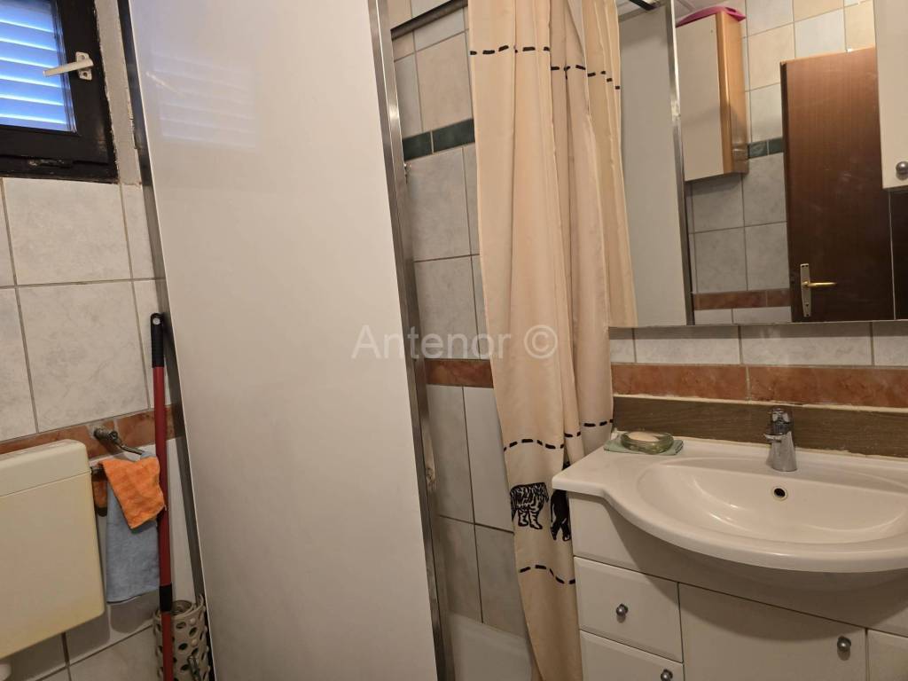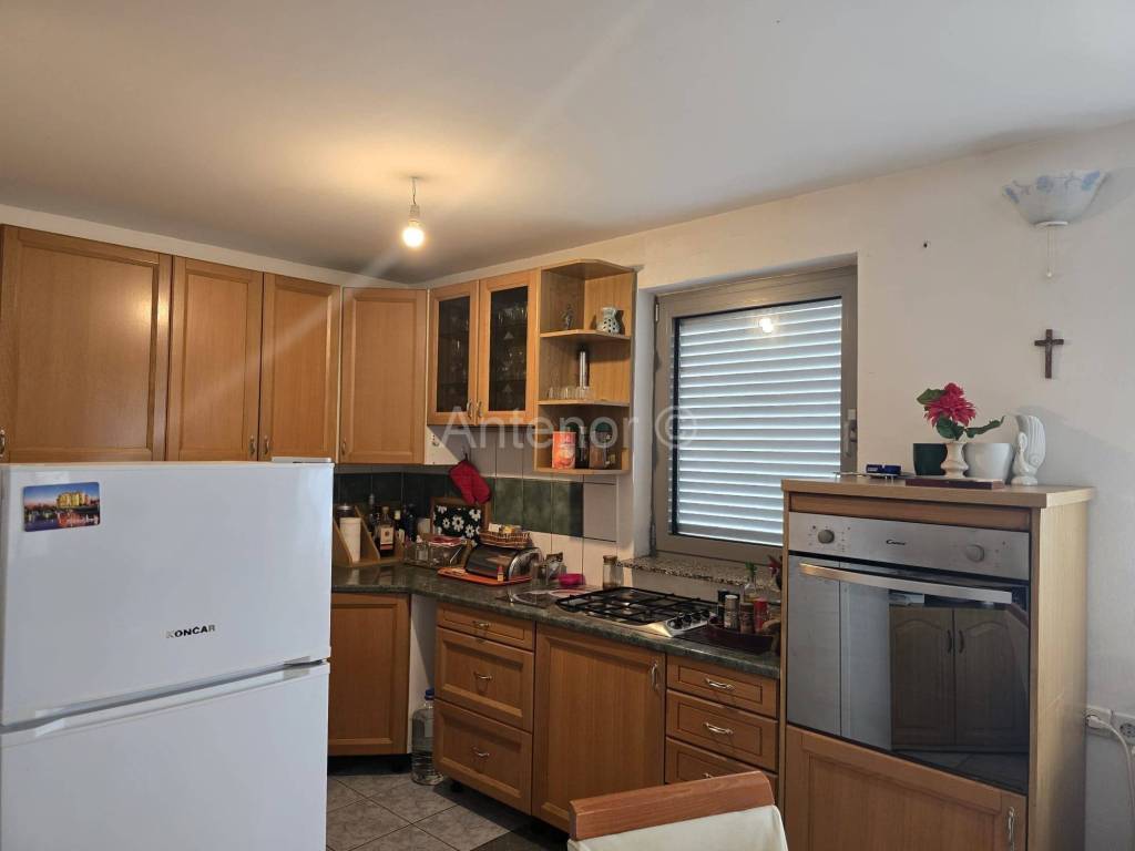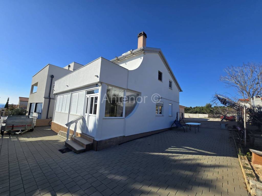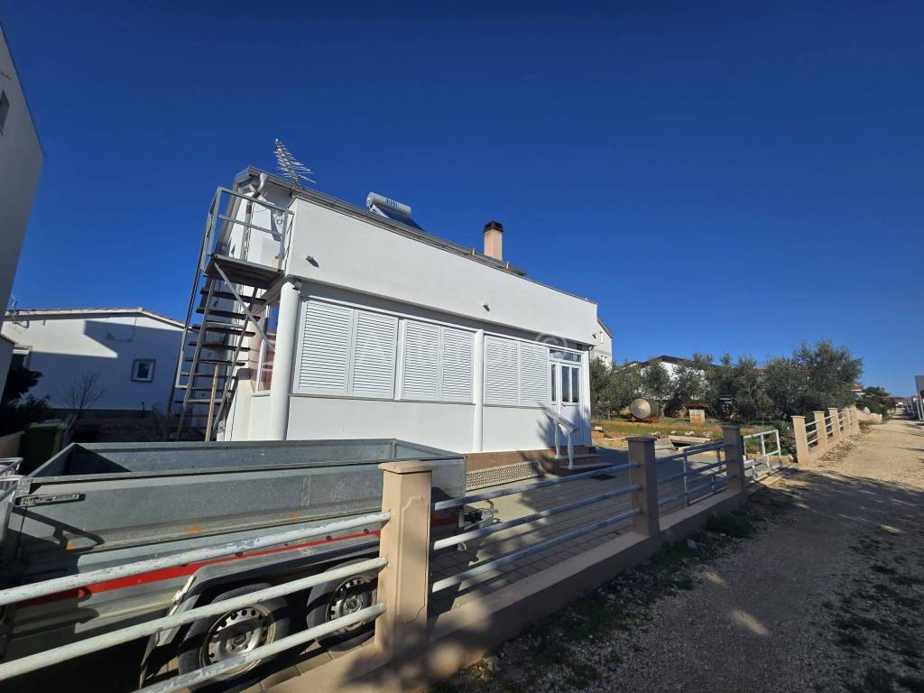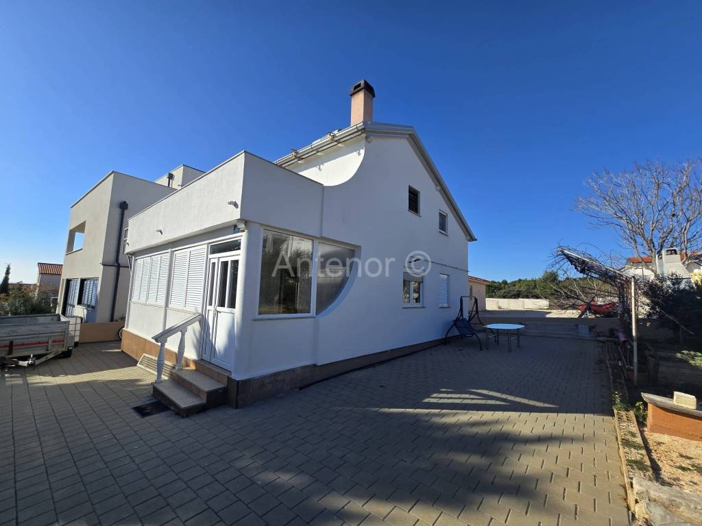 VIR - Prodaje se samostojeća kuća sa dvije stambene jedinice. Kuća se sastoji od podruma, prizemlja i prvog kata. U podrumu se nalazi kamin. Podrum se može koristiti kao ostava ili prostorija za druženja. U prizemlju se nalazi kuhinja sa dnevnim boravkom i blagovaonicom, kupaonica, dvije spavaće sobe. Vanjskim stubištem dolazimo na kat gdje se prostire velika terasa s koje se pruža djelomični pogled na more. Na katu se nalazikuhinja s blagovaonicom, dvije spavaće sobe i kupaonica. Prodaje se kompletno namještena. Kuća se nalazi oko 170 m od mora. Vlasništvo je uredno.