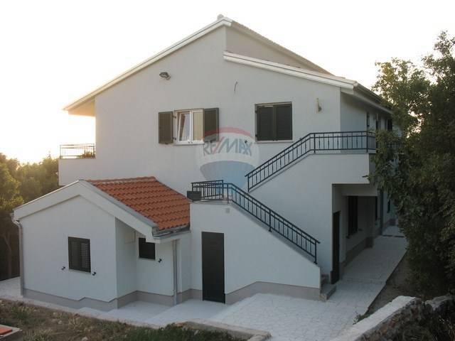 Modern decorated house near Stari Grad (Paklenica) with large parking and landscaped garden. At less than 50 meters from the sea, with a beatiful sight to island Pag. The house consists of three housing units: ground: 1) Apartment 2 bedrooms + living room, 80 m2 with balcony 2) Apartment 1 bedroom + living room, 45 m2 3) Flat four bedrooms + living room, 119 m2 with large balcony BONUS! The buyer gets gift separate area - a little house/apartment of 32 m2, on the promenade along the sea, ideal for business (cafe, fast food, etc.), or residential use.