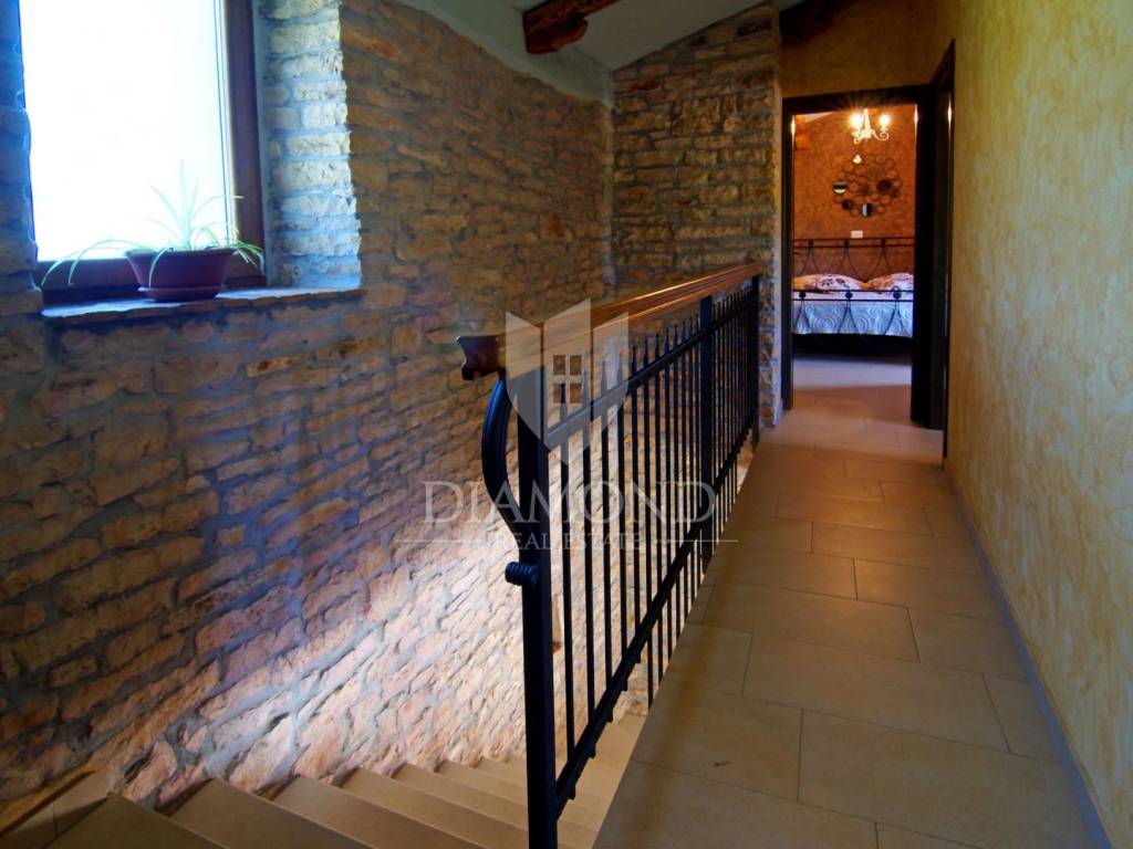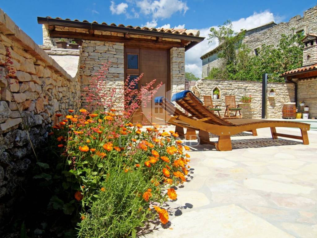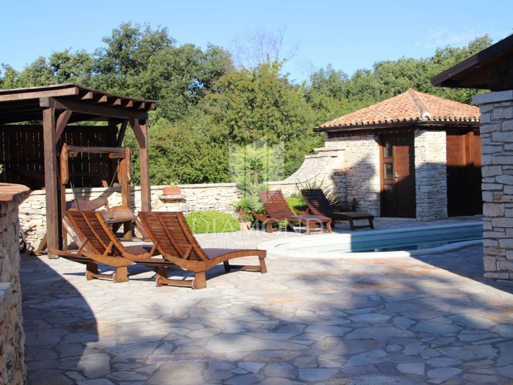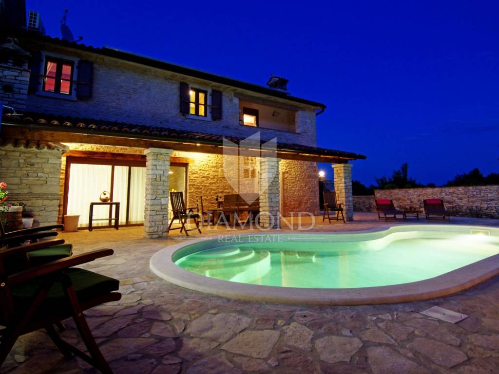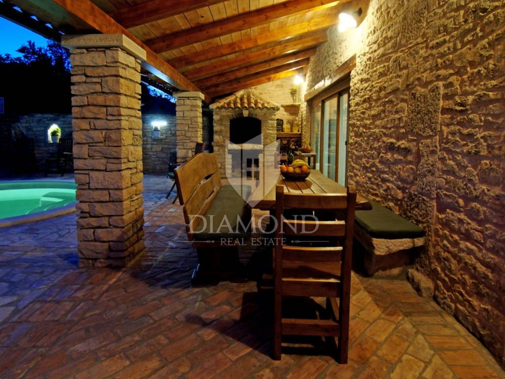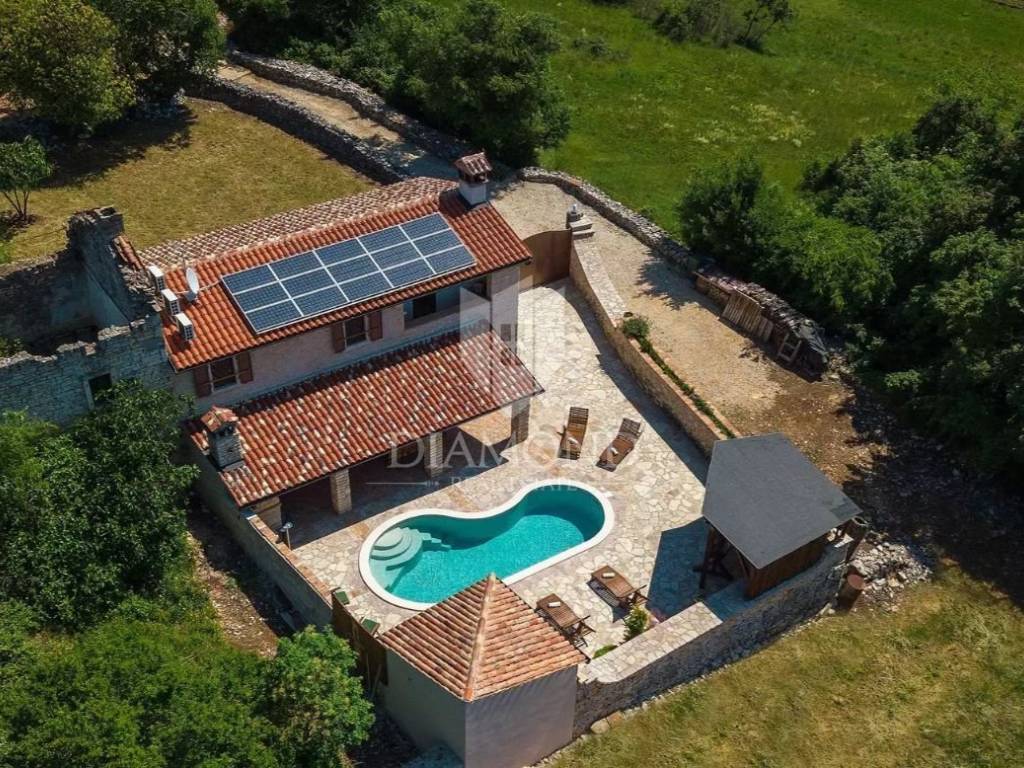 Near Barban, this holiday villa with pool is for sale. Barban is a small historical place located halfway between Labin and Pula. It is known for the knight's game "Race to the Ring", which in recent years has become a trademark of the place, and is one of the most famous summer events in Istria. This traditional stone villa is located near Barban, in a small quiet village, overlooking the greenery of nature. The villa was completely restored in 2014. The stone used to build the Villa was brought from around the village, restored with quality materials, and many original elements have been preserved, such as old tiles in the living room. Traditional construction, especially natural stone and wood, is largely respected. The villa has two floors. The ground floor has a living room with fireplace, kitchen with dining area and bathroom. Upstairs are three more bedrooms and a bathroom. One room opens onto a terrace with a beautiful view of the surrounding hills. The villa has underfloor heating and all rooms are air conditioned. It is furnished and equipped with quality furniture, and as such is sold. This Villa is one of the first holiday homes in Istria to be awarded the Eco Domus certificate, namely in 2018 it was named the best Eco house in Europe. It is special and certainly for the photovoltaic system of electricity production with legalized return to the grid. Both the interior of the Villa and the exterior have been immaculately maintained. In the yard there is a modern pool of German quality, sun deck, and a covered terrace with barbecue, where you can enjoy the warm summer months. The yard is surrounded by stone walls, and peace and privacy is guaranteed here. Beautiful traditional Istrian Villa, ideal for a quiet family life, or for rent, where the owner already has a well-established business.