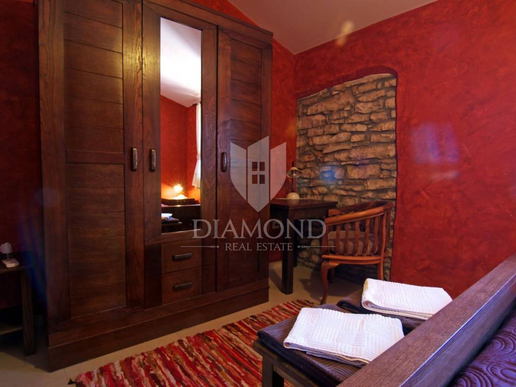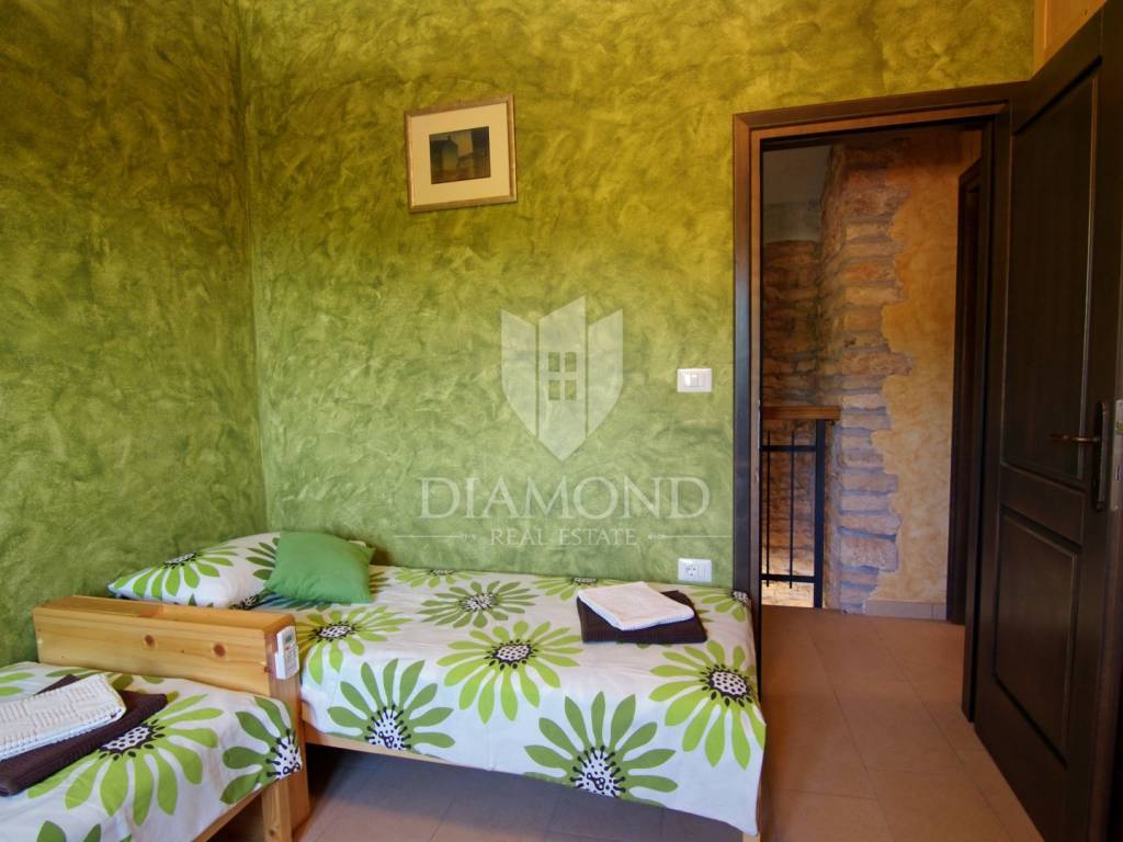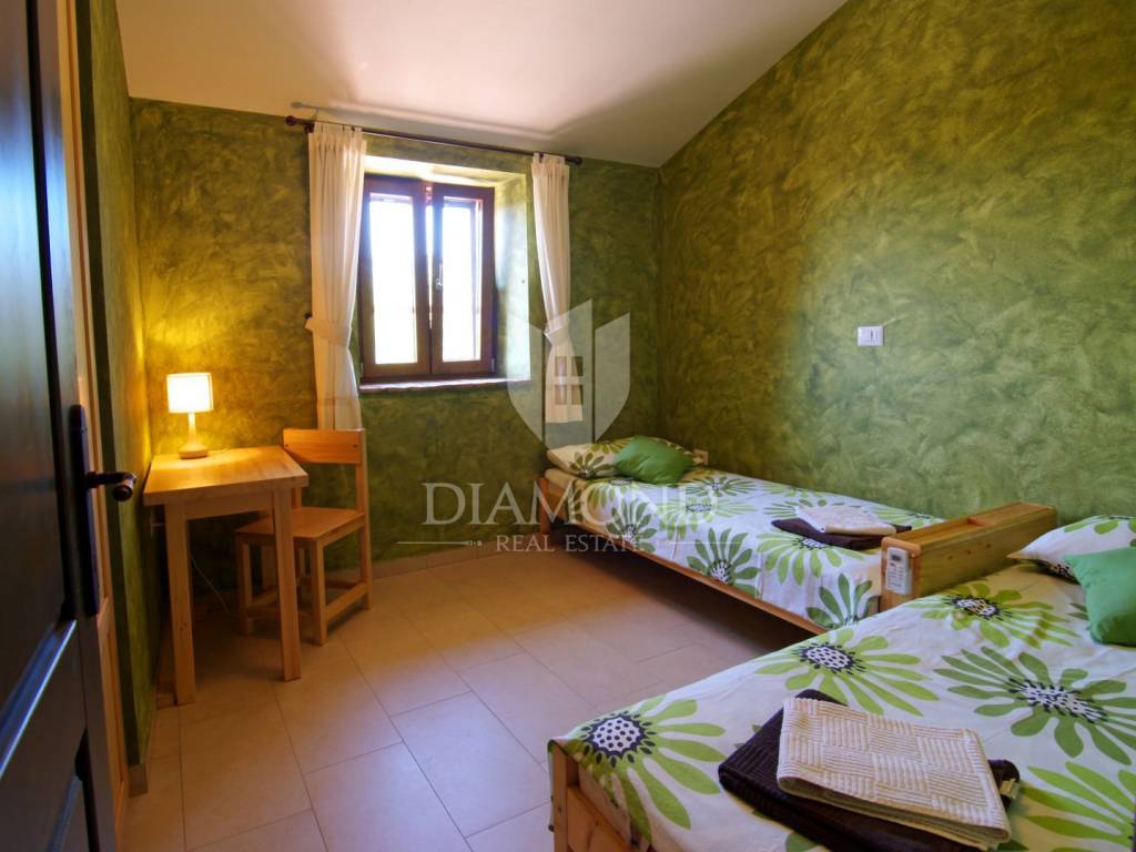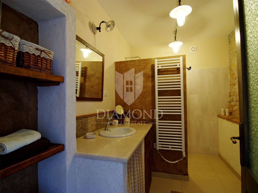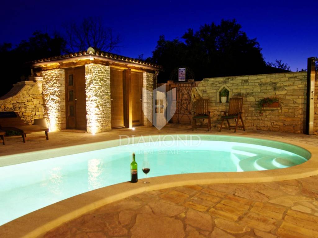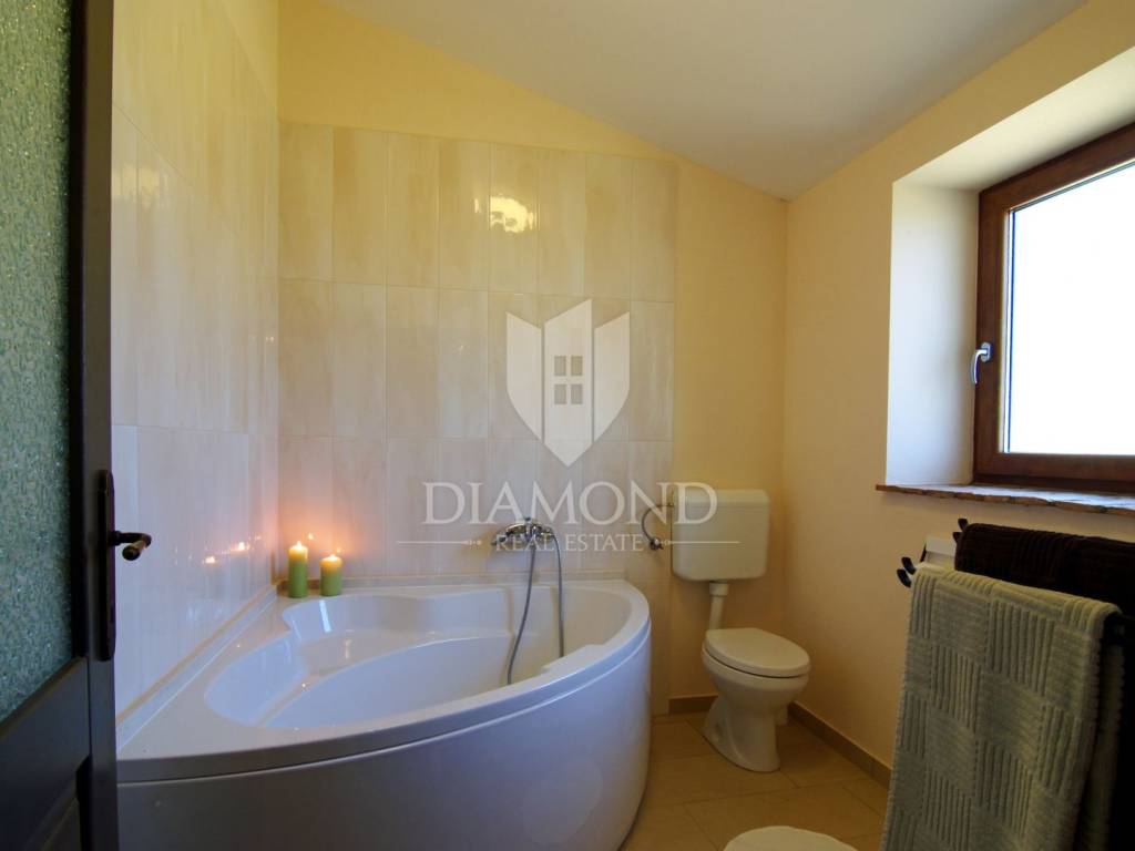 Near Barban, this holiday villa with pool is for sale. Barban is a small historical place located halfway between Labin and Pula. It is known for the knight's game "Race to the Ring", which in recent years has become a trademark of the place, and is one of the most famous summer events in Istria. This traditional stone villa is located near Barban, in a small quiet village, overlooking the greenery of nature. The villa was completely restored in 2014. The stone used to build the Villa was brought from around the village, restored with quality materials, and many original elements have been preserved, such as old tiles in the living room. Traditional construction, especially natural stone and wood, is largely respected. The villa has two floors. The ground floor has a living room with fireplace, kitchen with dining area and bathroom. Upstairs are three more bedrooms and a bathroom. One room opens onto a terrace with a beautiful view of the surrounding hills. The villa has underfloor heating and all rooms are air conditioned. It is furnished and equipped with quality furniture, and as such is sold. This Villa is one of the first holiday homes in Istria to be awarded the Eco Domus certificate, namely in 2018 it was named the best Eco house in Europe. It is special and certainly for the photovoltaic system of electricity production with legalized return to the grid. Both the interior of the Villa and the exterior have been immaculately maintained. In the yard there is a modern pool of German quality, sun deck, and a covered terrace with barbecue, where you can enjoy the warm summer months. The yard is surrounded by stone walls, and peace and privacy is guaranteed here. Beautiful traditional Istrian Villa, ideal for a quiet family life, or for rent, where the owner already has a well-established business.