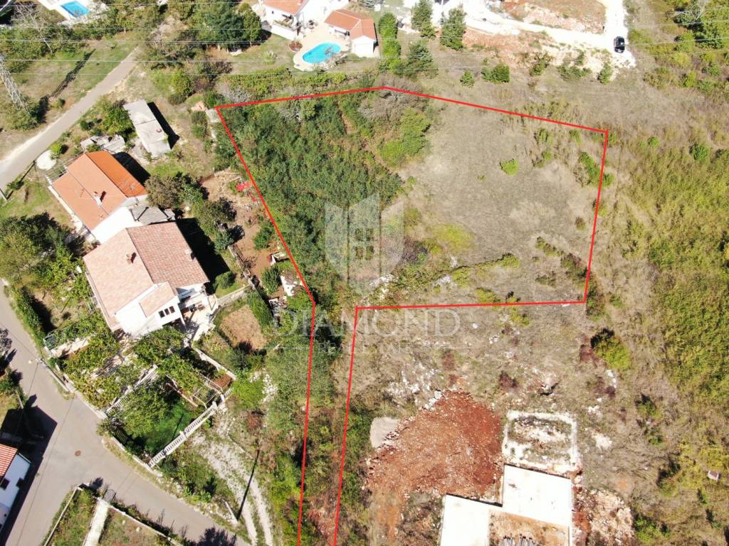 We are selling a beautiful building plot in an attractive location 5 km from the center of Labin. Near the city center, we are selling a construction plot of 2133 m2, completely within the scope of the construction zone. The terrain is flat and is located on a slight elevation with an unobstructed view of the Old Town of Labin and the surrounding green landscape. An access road from the public area is provided, and the necessary infrastructure is located next to the field. The land can be subdivided and is ideal for building one or two holiday homes with a beautiful view and in a quiet location, yet close to all essential facilities. The first store is located even closer, at 3.5 km. The place is known for an increasing number of luxury villas and holiday homes. It is located 10 km from the first beaches in beautiful Rabac, the largest tourist destination on the east coast of Istria.