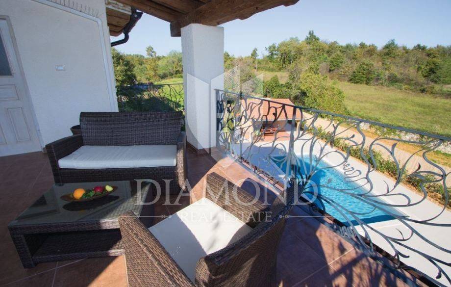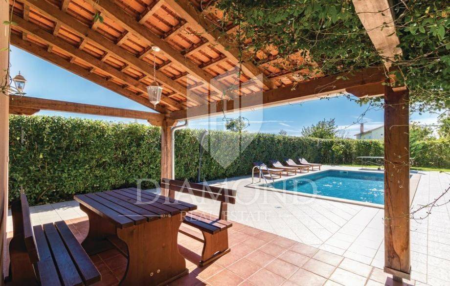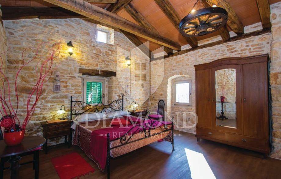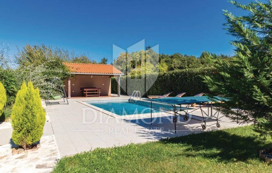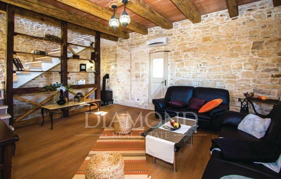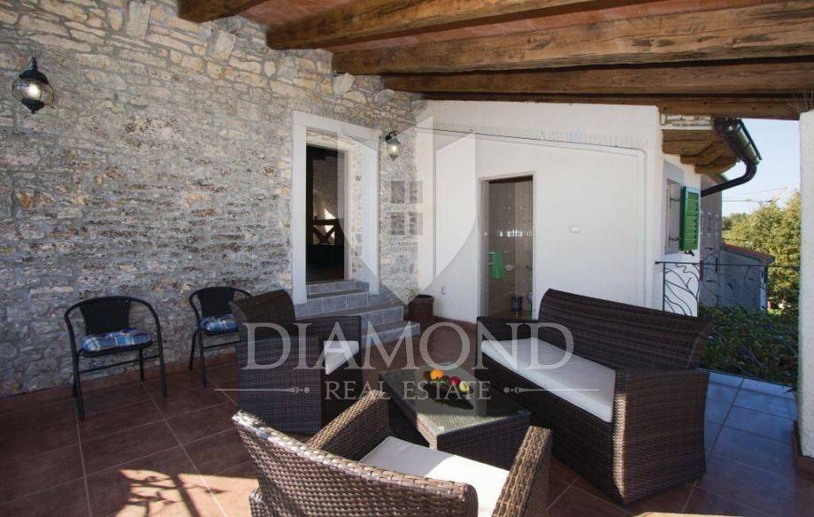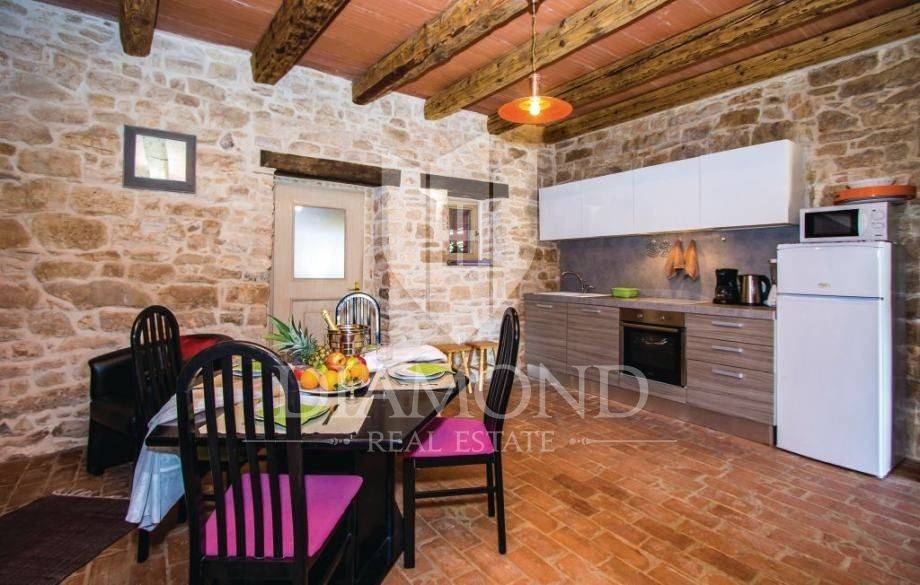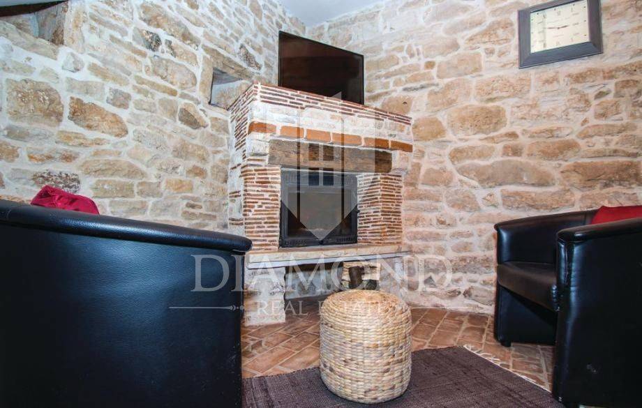 Barban, surroundings, beautiful autochthonous house in a quiet location We are selling a beautiful stone house with an autochthonous appearance in a quiet settlement. The house consists of a ground floor and two floors with a total area of 160 m2. On the ground floor of the house there is a kitchen and dining room, a bathroom and a bedroom with access to a terrace and a garden with a swimming pool of 36 m2, as well as an auxiliary building with a barbecue. On the first floor there is a living room with a pleasant atmosphere and one bedroom with a bathroom, while on the second floor there is a beautiful gallery designed as a bedroom with access to a large terrace with a view of the entire garden and the greenery surrounding it. The last adaptation of this property was made in 2020 and as such is ready for tourist rental as well as peaceful family life. An ideal opportunity.