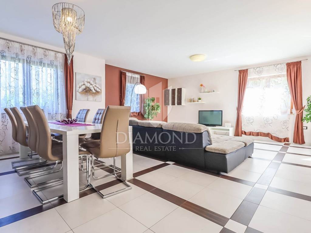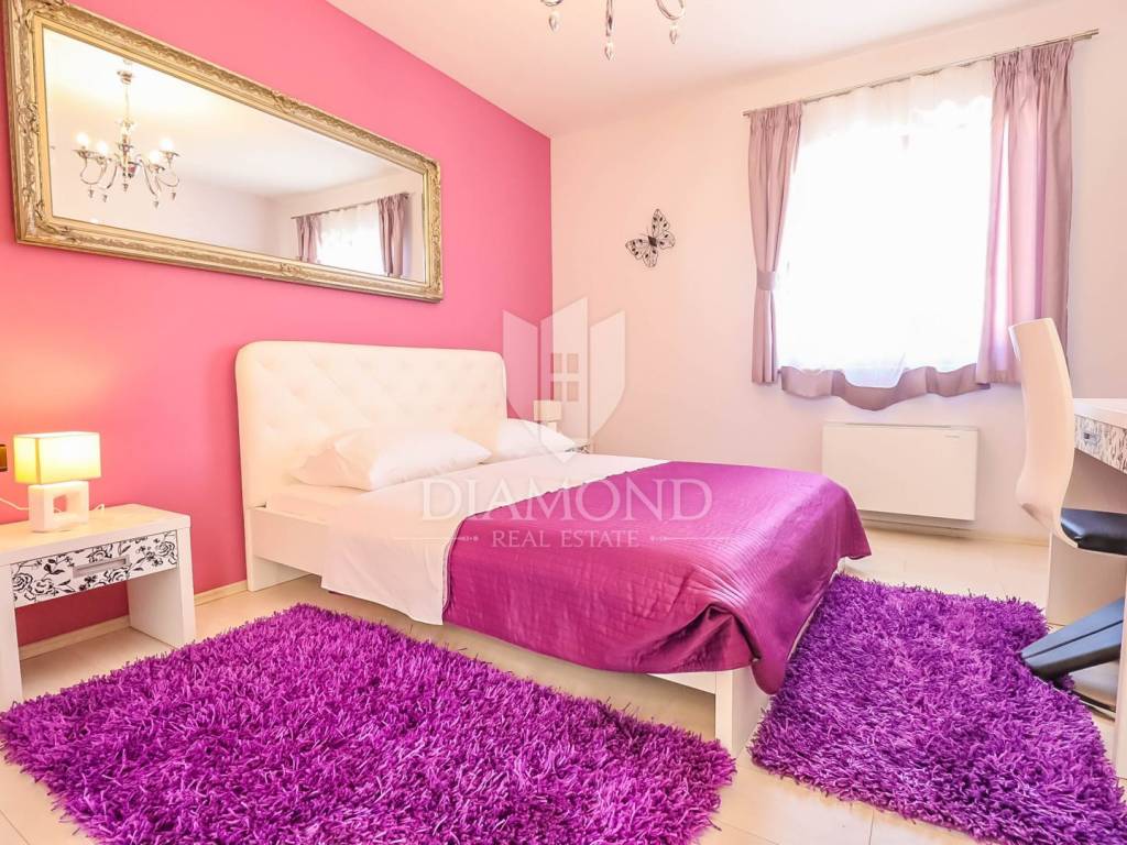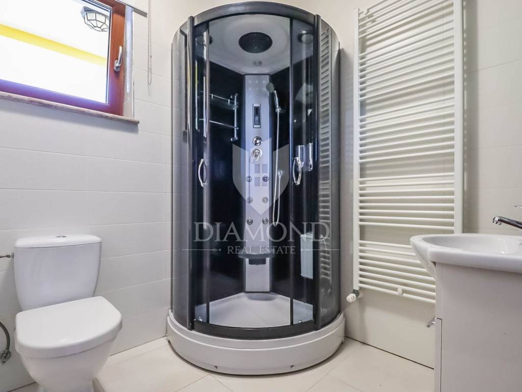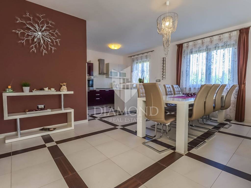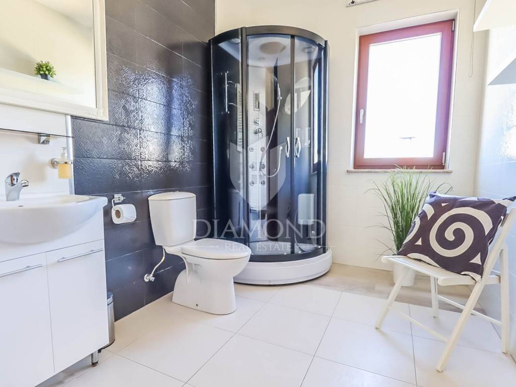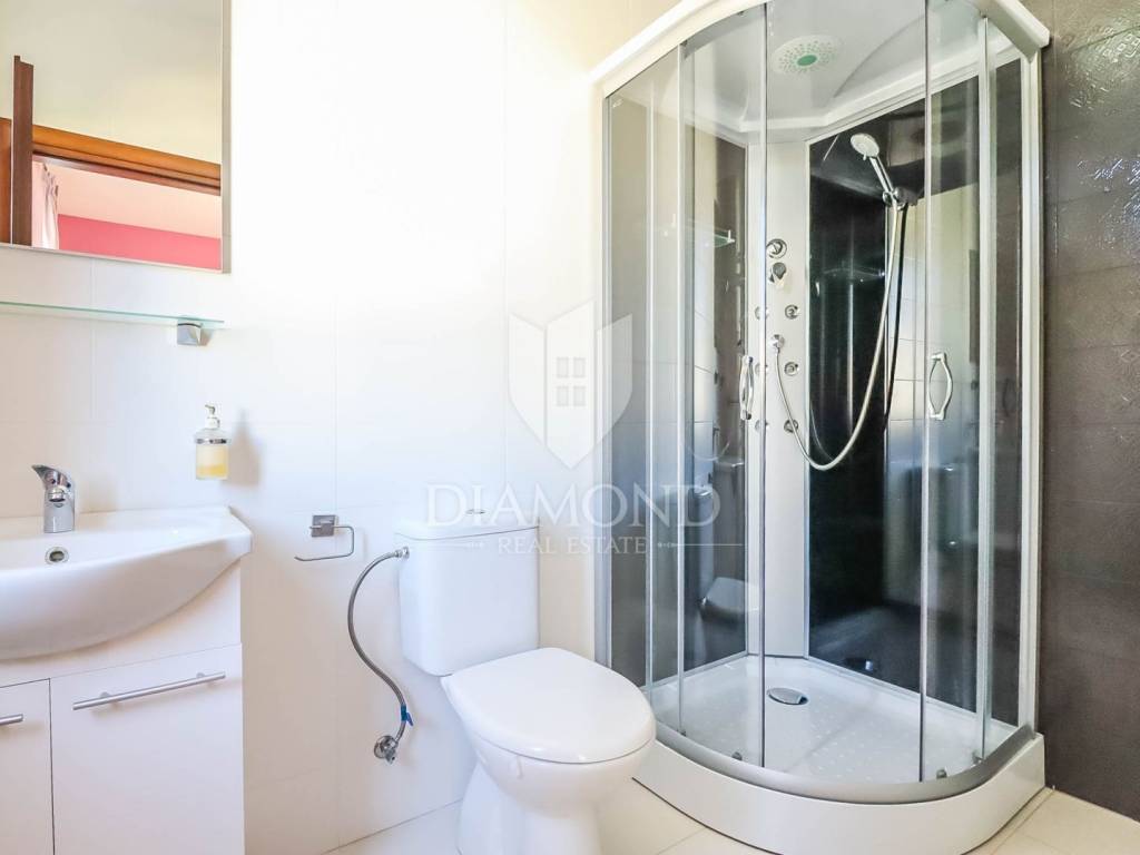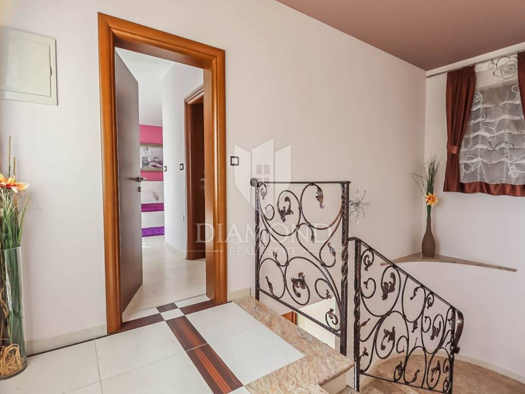 This house has 250m2 of living space divided into two floors. On the ground floor there is a living room connected to the kitchen and dining room and two bedrooms with their own bathrooms, a guest toilet and three storage rooms, one of which has access to the garden. Na katu kuće nadi se three bedrooms with private bathrooms and a terrace overlooking the sea. In the garden there is a pool with a sun bath. There is enough space in front of the house to park 3-4 cars.
