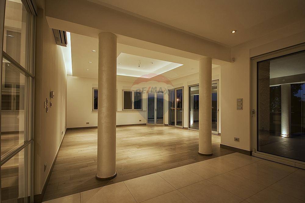 The ground floor has an area of 220 m2, it is dominated by an imposing living room facing the sea and largely glazed, and in front of the entire width of the terrace raised above the rest of the field. The ground floor has three bedrooms, two bathrooms, dressing room and hallway. The first floor is designed only for the owner, has 50 m2 and is conceived as a bedroom with a private terrace with unimpeded sea views, bathroom and wardrobe.