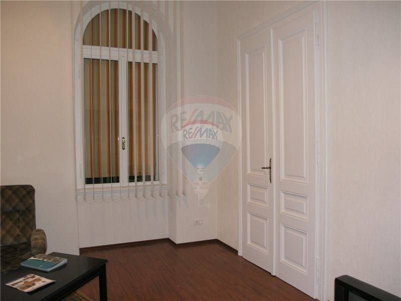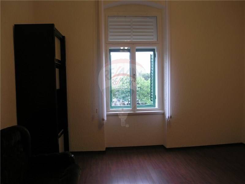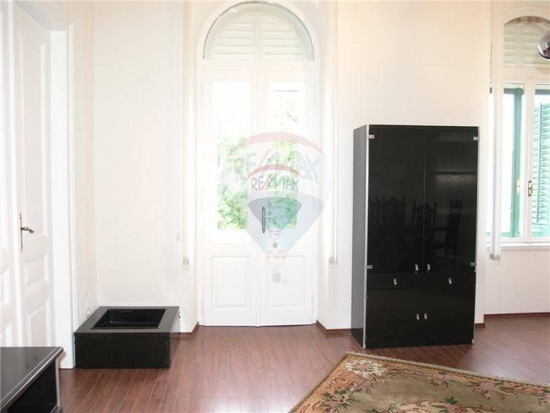 RIJEKA - CENTAR - Stan od 170 m2 na prvom katu, kompletno adaptiran i namješten veoma ukusno. Stan ima šest velikih soba u kojima je postavljen parket od trešnje. Dugački hodnik koji povezuje sobe i dva saniterna čvora ( kupaonice luksuzno opremljene), na podu ima teraco. Svaka soba ima svoju klimu sa converterom, te svoj zasebni strujni sat. Prozori su drveni starinski na kojima su postavljena dupla stakla, tako da se unutra nečuje buka od prometa.
