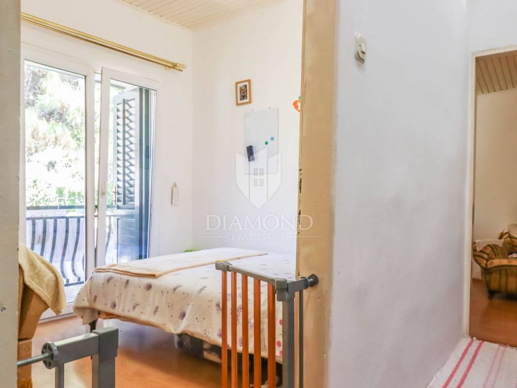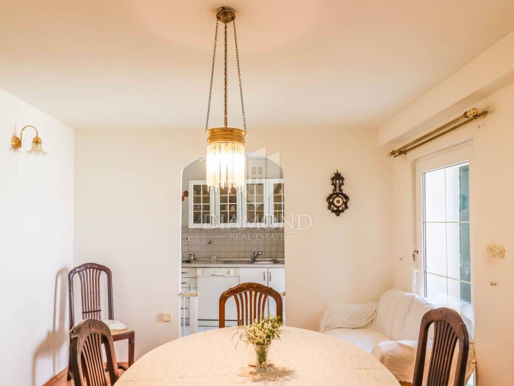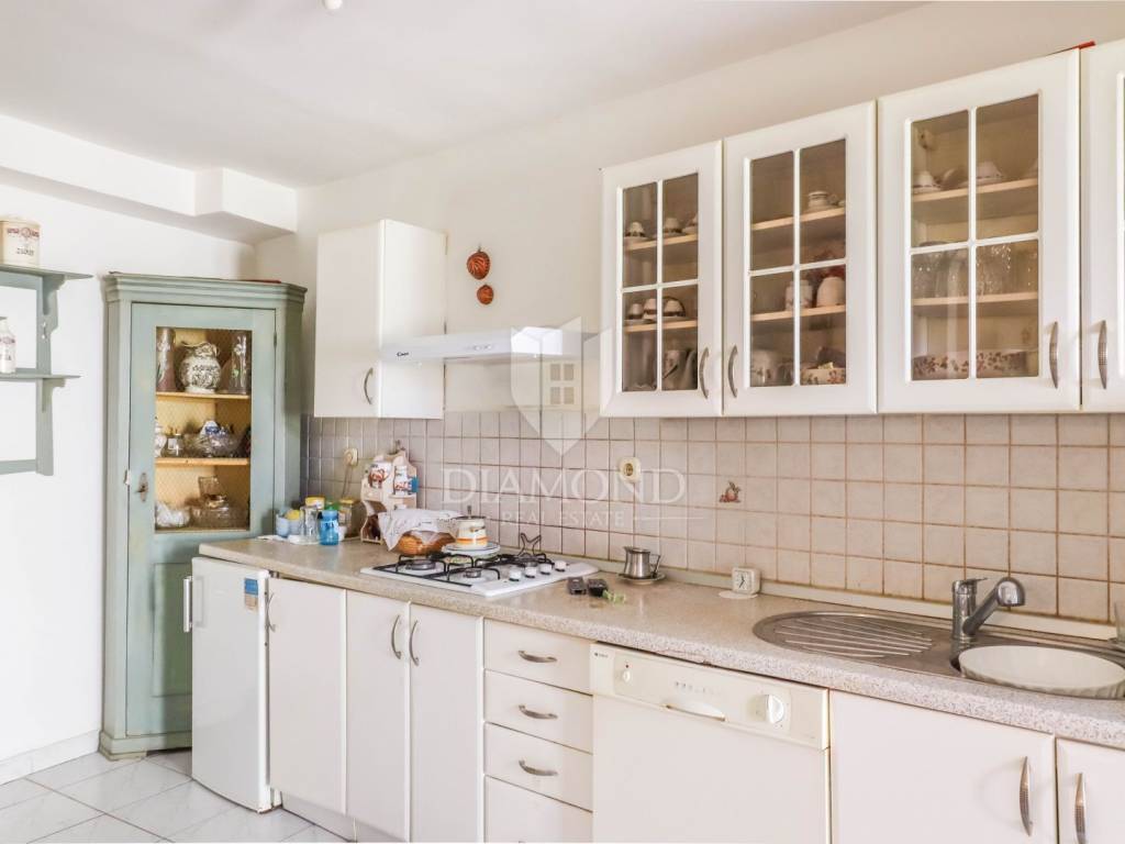 The entrance to the house leads to a spacious living room with a dining area, perfect for spending time with family and friends or relaxing after a long day of exploring Rovinj. The kitchen has its own space separate from the living room and is large enough for uninterrupted preparation of delicious meals for your family or guests.