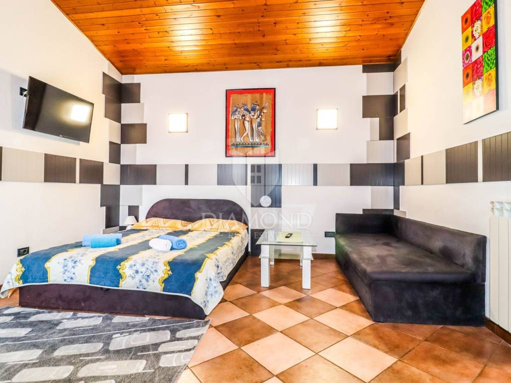 Located in a peaceful neighborhood, this residential property in Rovinj is 1.5 km from the city center and only 400 meters from the beach. Surrounded by greenery and close to all essential amenities, it is ideal for a relaxing family life or as an investment.