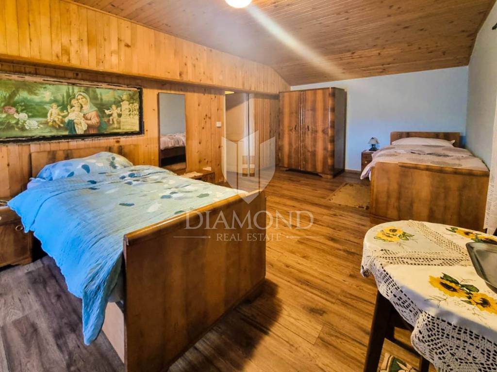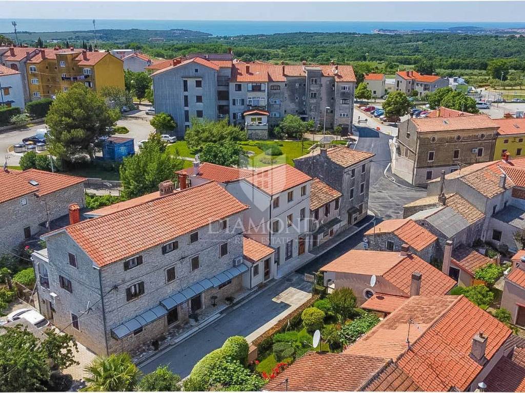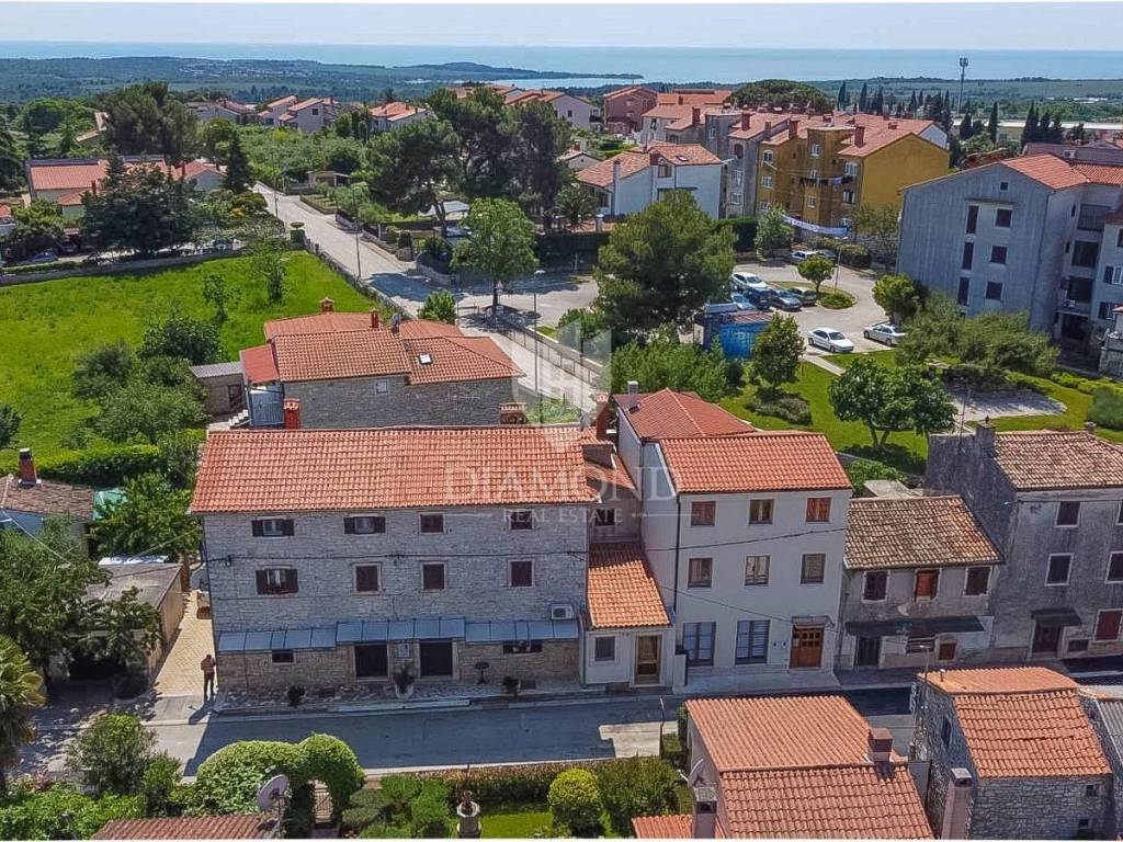 A house for renovation with a lot of potential is for sale in the center of town, not far from the city of Poreč. Everything you need for life and entertainment can be found nearby. Although it is in the center of town, the house with a 200m2 yard offers peace and intimacy. The total size of the living space is 250 m2. The ground floor of the house is planned as a separate studio of a total of 55 m2. On the first floor, the hallway leads to the living room of the house and two bedrooms with bathrooms. An internal staircase leads to two more bedrooms. The house is habitable. With a minor adaptation, the future buyer can get two separate units that he can eventually rent. in the yard there is a garden and another building of 30m2 can be arranged as a summer kitchen or as another smaller studio.