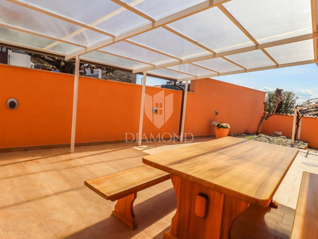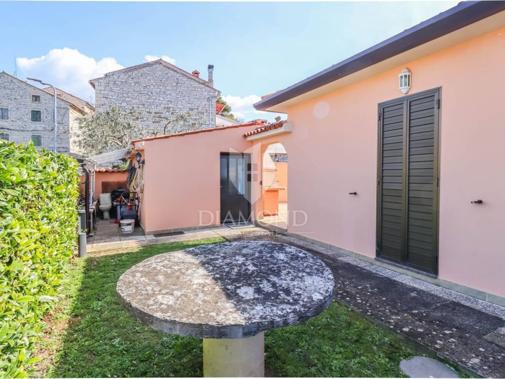 Given its location, within walking distance of the town of Buje, shops, restaurants, cafes and schools, this house is ideal for a peaceful family life all year round.