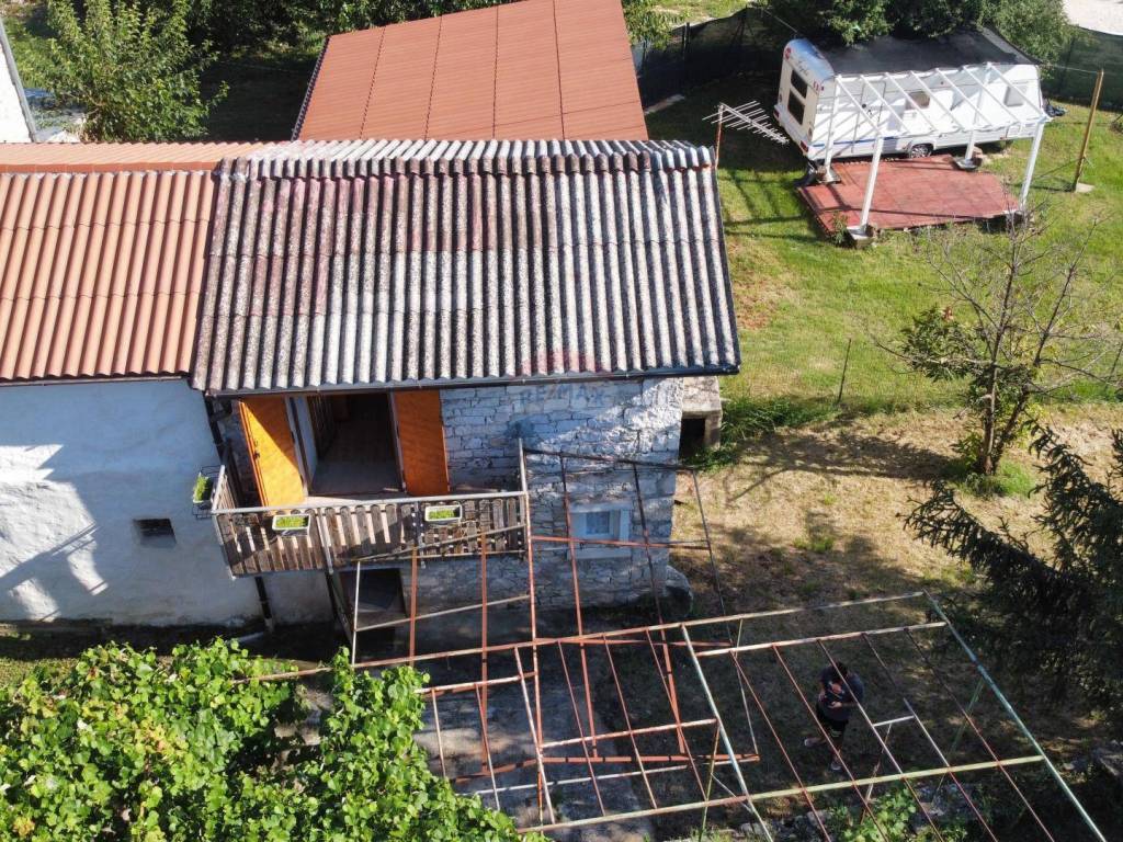 The second house is located directly across from the first house and is the last in a row of three houses. Its footprint is 25 m2. On the ground floor, you'll find a kitchen and bathroom, along with a wooden staircase leading to the first floor. The first floor houses a spacious bedroom with a balcony that offers a beautiful view of the surrounding nature and the sea. The house has a lovely plot of 480 m2, providing ample space for parking, building a pool, sunbathing, and a summer kitchen. Additionally, two auxiliary buildings are on the plot. One building, with an area of 16 m2, serves as a garage for agricultural machinery, while the other, with an area of 34 m2, serves as a workshop and storage. Both buildings are legalized and registered in the cadastre.