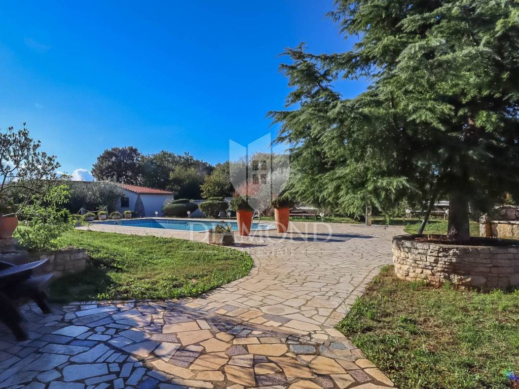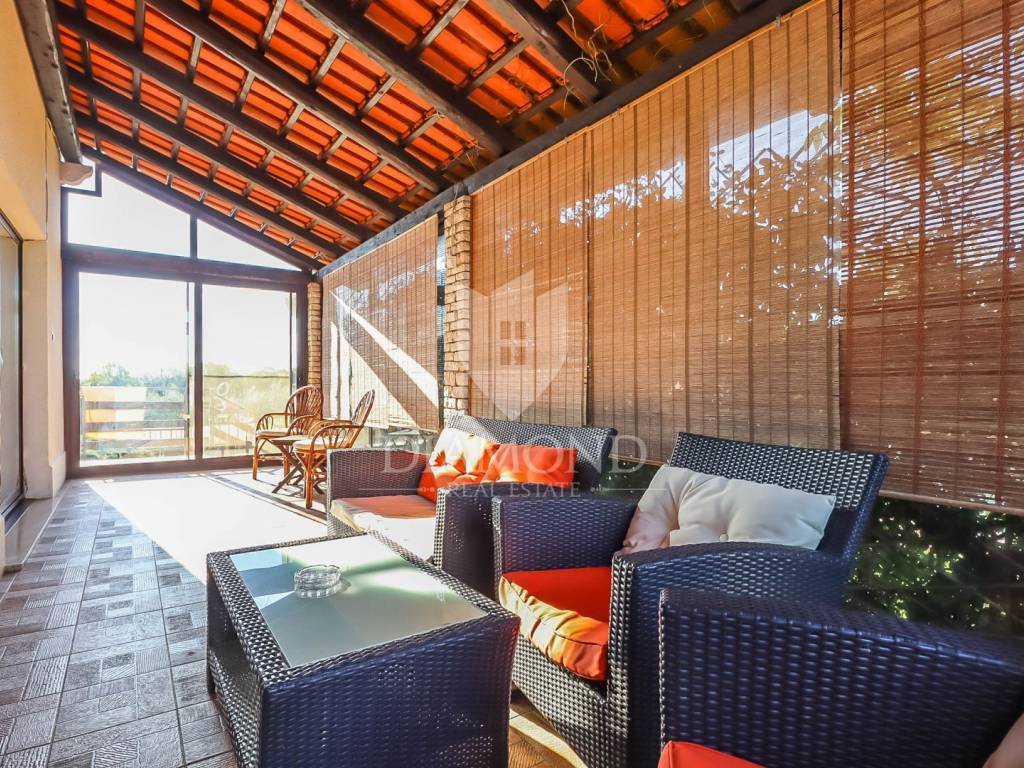 On the plot of 2118 m2 there is a spacious house and an auxiliary building. The house itself consists of three floors, where in the basement there is a tavern, a kitchen, an atomic shelter and two more storage rooms. On the ground floor there is a large apartment with a kitchen and dining room, a living room with access to the terrace and a staircase that leads to the first floor where there are three more bedrooms, while a separate hallway and staircase leads to the second part of the first floor where there are two more bedrooms. rooms and one smaller area where there is video surveillance and an exit to the loggia. From this largest apartment, it is possible to access one apartment on the ground floor, which consists of a bedroom and an open space living room with a kitchen and dining room and a bathroom. On the ground floor there is another apartment with a similar layout. There are two more residential units in the auxiliary building, which is located twenty meters away from the house. The yard is spacious and green, where there is also a swimming pool with a sunbathing area and a barbecue.