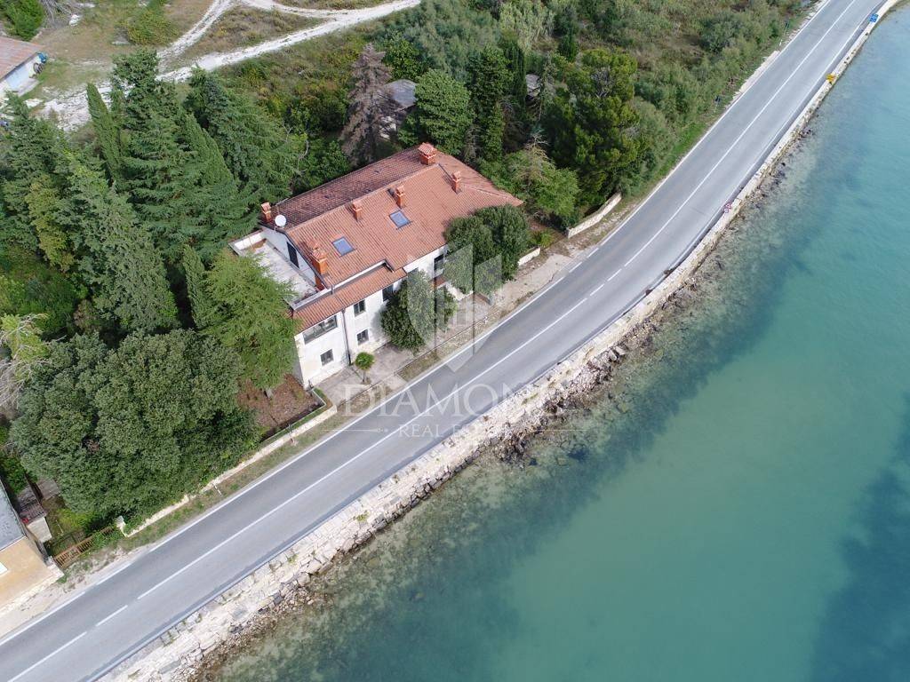 It is a detached property that extends through the ground floor, first floor and attic. The area of the property is 470.24 m2. Currently, the house is divided into 5 residential units. In the past, the ground floor was used for office space. Apartments are planned on the floors. The house is heated using central heating. The house offers a beautiful and open view of the sea and the river Mirna. The yard is spacious and fenced and offers many possibilities for the new owner. There is also space for several parking spaces within the garden.