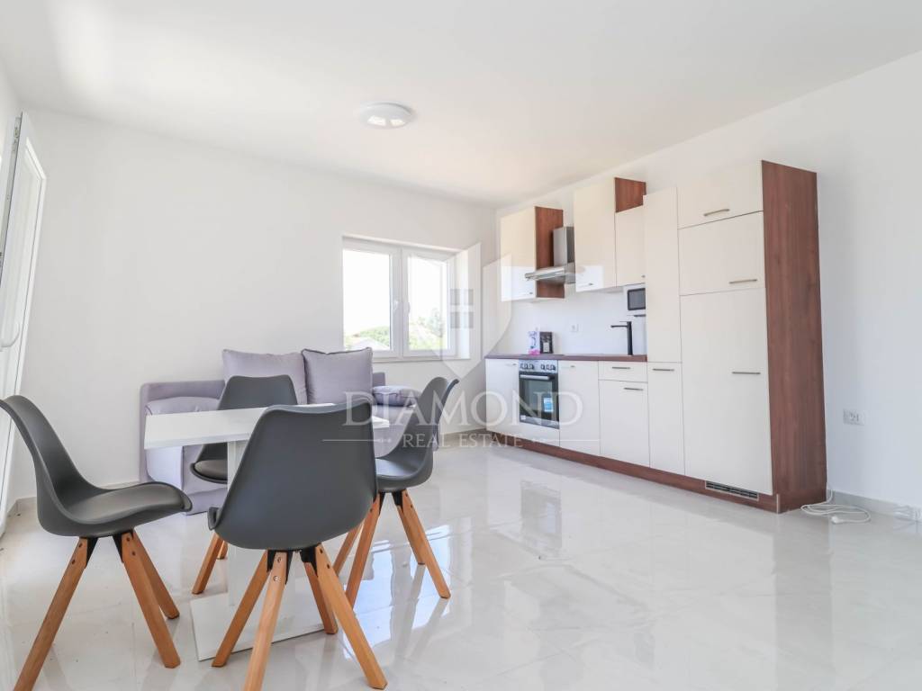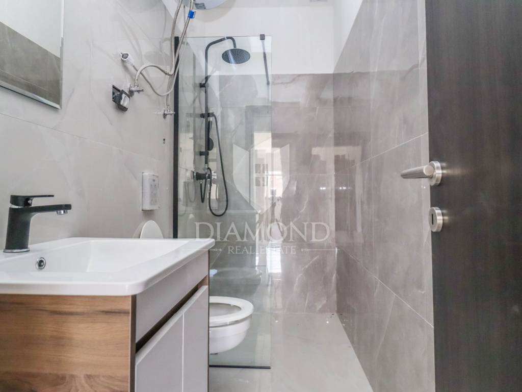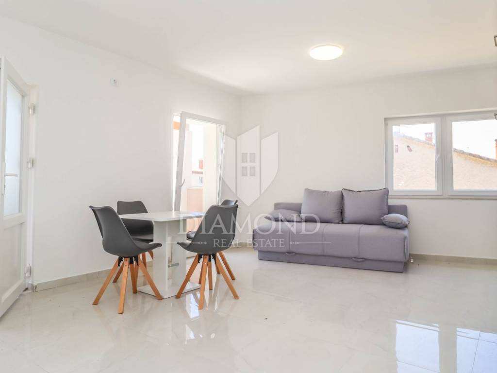 The house consists of three apartments, each with a separate entrance. The first apartment is on two floors: on the ground floor there is a living room with a kitchen and a bathroom, and the staircase leads to the first floor where there are two bedrooms and a terrace. The second apartment is entirely located on the first floor and consists of a spacious living room with a kitchen that opens onto a terrace with a view of the sea. In the continuation of the apartment there is one bedroom and a bathroom. The third apartment is located on the ground floor and has a living room with a kitchen, one bedroom, a bathroom and a terrace. The house has been completely renovated: new electricity, plumbing, sanitary facilities, carpentry, roof. Tiles have been installed in all rooms and air conditioners will be installed. The house also has a chimney that should be opened so that there is a possibility of wood heating. The yard will be completely fenced with parking spaces. Inside the garden there is room to build a swimming pool. The property is sold furnished.