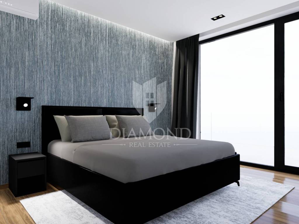 An elegant staircase leads us to the first floor where there are three bedrooms, each with an en suite bathroom that provides privacy and comfort. An additional room on the first floor can serve as a gym or playroom, adaptable to the needs of the owner. We then go up to the second floor to the roof terrace that represents a real oasis. It is equipped with a sundeck, a bar and a hot tub, providing an incredible space for relaxation and enjoyment. The sea view from this terrace is special.