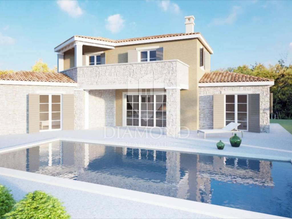 Building land with a project in the vicinity of Poreč In a place known for Istrian prosciutto and traditional culture, this beautiful building land with a conceptual project is for sale. The total area of the land is 710 m2, and the square footage of this interesting villa is 143 m2, and it consists of the ground floor and the first floor, three bedrooms with bathrooms and a spacious open space living room, kitchen and dining room. The infrastructure is right next to the field and is ready for construction. The land is located on the edge of the construction zone, so it has a view of the nature that surrounds it. Shops, restaurants, post office, pharmacy, school, kindergarten, nursery, general practitioner, adrenalin park, located near the village, only 3 km away. While Poreč and the beaches are only 15 km away. Due to its location, this property is an ideal investment for family life.