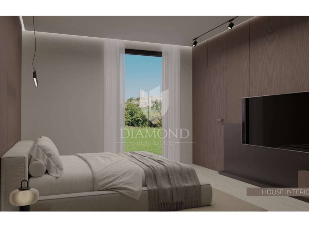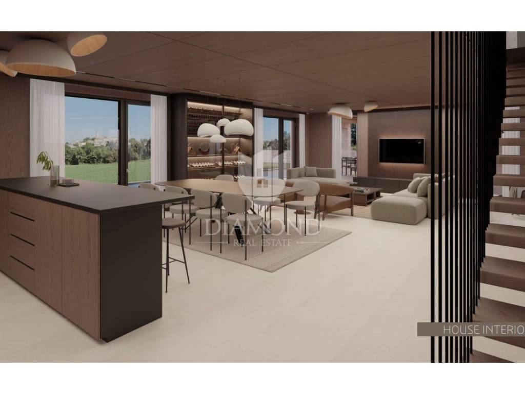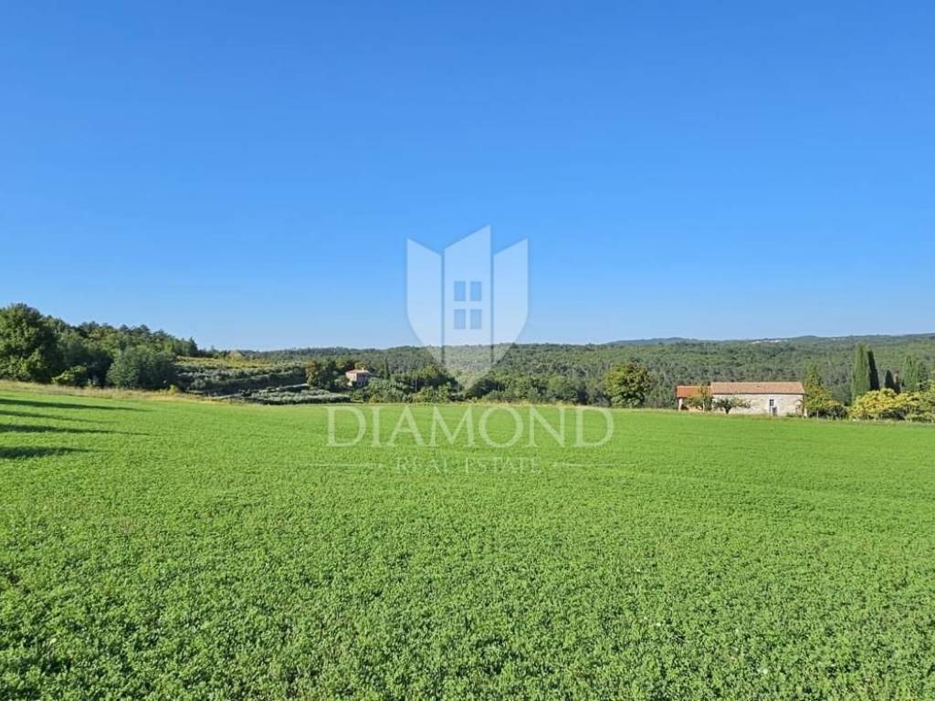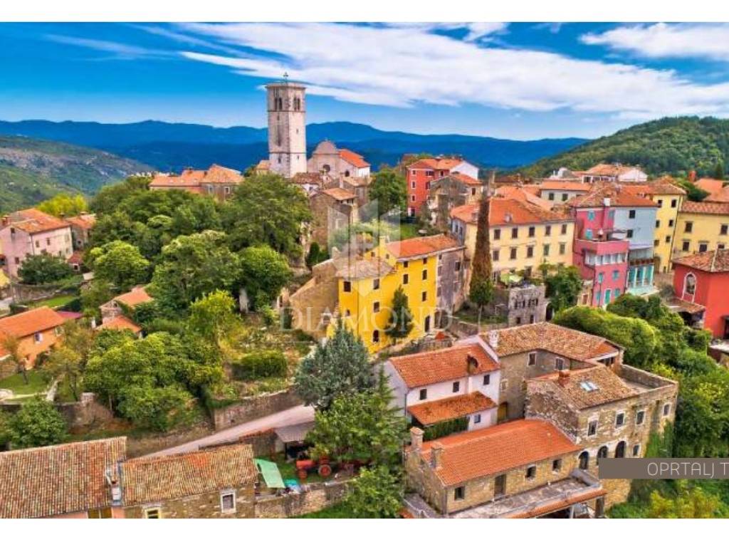 Istria, Buje, Surroundings Opportunity! A rarity on the market, land with an open view of Oprtalj and the project. A building plot of 900 m2 is for sale, a project for a stone house with a swimming pool has been made for the plot. The house consists of an open space living room with a kitchen and dining room, a bathroom, a toilet, a storage room, and on the first floor there are 4 bedrooms with their own bathrooms. All infrastructure is located on the field. The building permit application has been submitted and is awaiting approval, the building permit and the project are included in the price. The land has a regular shape with an open view of the beautiful Oprtalj. The town of Oprtalj itself is one of the oldest Istrian settlements with a long history, in the center there is a Venetian loggia from which the view reaches all the way to the sea and the colorful facades of the houses give it picturesqueness. Oprtalj used to be a fortress that was surrounded by walls. In the immediate vicinity, there are all famous wineries, agritourisms, restaurants, bicycle paths. Grožnjan is 15 kilometers away, Motovun a little more than 10 kilometers, and Buje is 17 kilometers away.