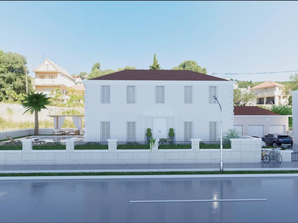 This new construction project is located in a small town near Dugopolje. It consists of two identical Dalmatian-style houses. They each have 170 m2 of living space, spread over the ground floor and upper floor, and each stand on a 534 m2 plot.The ground floor features an 11 m2 entrance area, a 32 m2 kitchen with a dining area, a 32 m2 living room, a 5 m2 utility room, and a guest toilet. An internal staircase leads to the upper floor.There are three large bedrooms. One of them is 19 m2 and the other two are each 15 m2. Another 8 m2 room is planned as a study room. There are also two 6 m2 bathrooms and a guest toilet upstairs.Each house has two parking spaces. The listed price includes completion of the house up to the handover of keys, including all necessary documents for the building inspection (Uporabna Dozvola). However, the buyer has many customization options for an additional charge, such as the construction of a garage, a pool, a terrace, or the installation of a photovoltaic system. Tiles and bathroom fixtures can also be customized for an additional charge. The developer will oversee any additional work requested.Completion is scheduled for October 2026.A bus stop is located directly in front of the house. To the nearest supermarket it is just 450 meters, to the old town of Split 20 km and to Split Airport it is 32 km.Note: 3D images are for marketing purposes only.