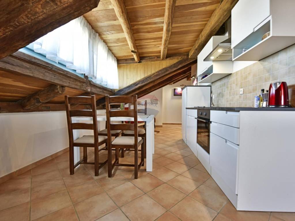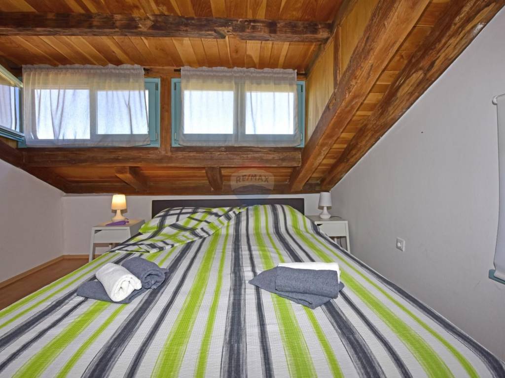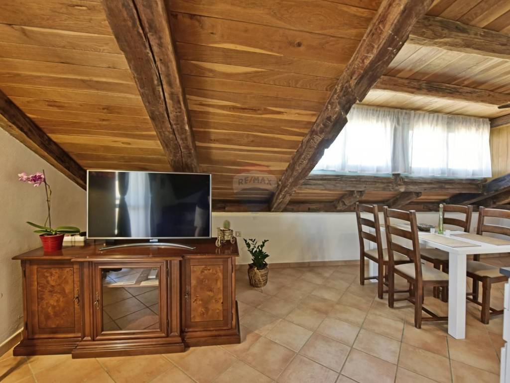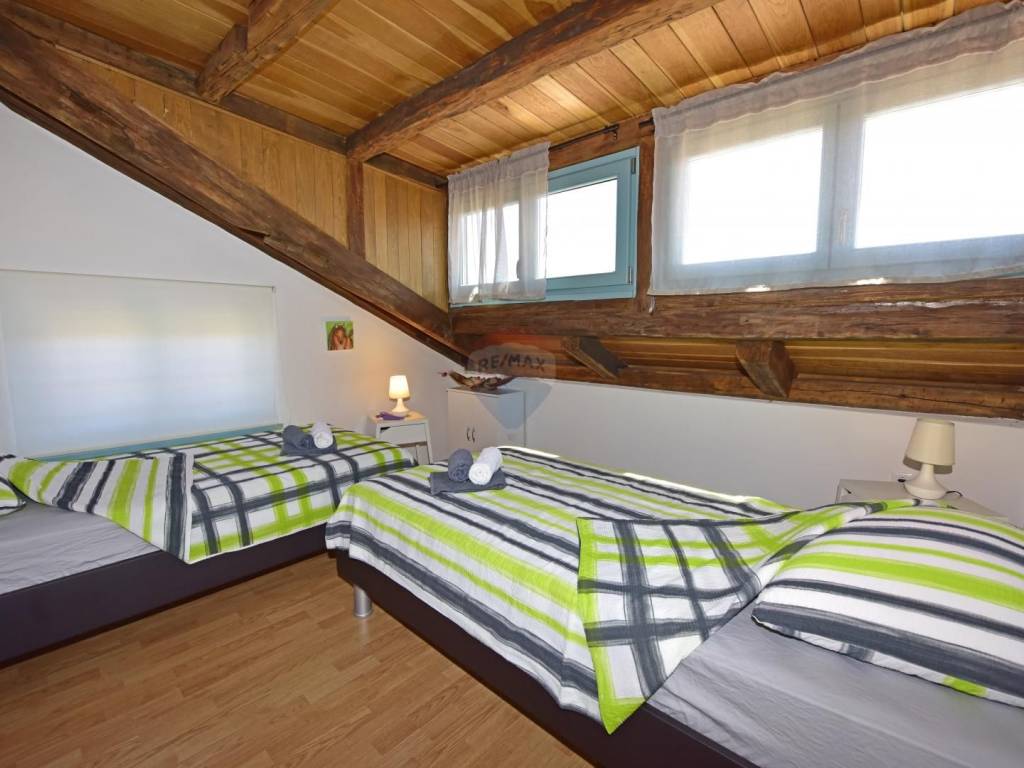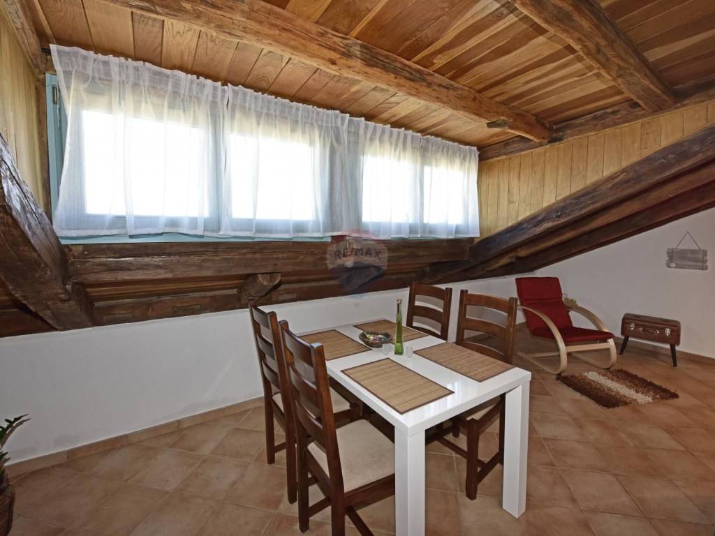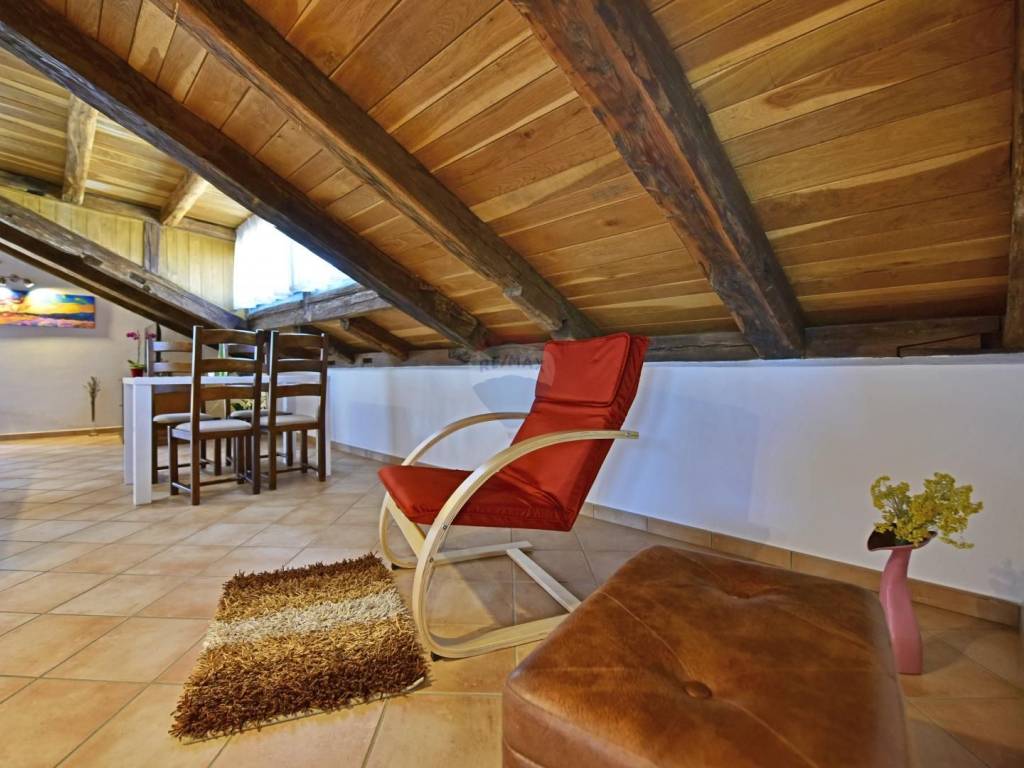 In a quiet location in the vicinity of Poreč, 5 km away from the first beaches, we are selling an apartment on the second floor, in the attic of the building. The apartment is located in a smaller building and consists of a living room, a kitchen with a dining room, two bedrooms and a bathroom. The terrace, which can be enjoyed in the summer months, is over 20 m2 and offers a view of the greenery and the sea. The parking lot is in front of the building.