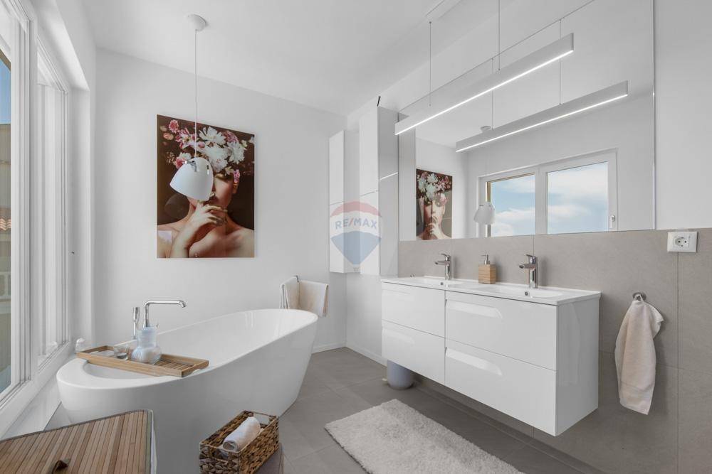 The house is equipped with the most modern technology - heat pump underfloor heating, a 7.5 kW fireplace in the living room and inverter air conditioning in all rooms. External blinds are controlled via WiFi or an automatic switch. There is also a solar system that fully covers electricity consumption and has an electric car charger. The entire property is equipped with a SONOS speaker system, and a surveillance and security system consisting of three cameras controlled via a mobile phone and an alarm device has been installed. The combination of comfort, luxury and beautiful surroundings make this property extremely attractive.