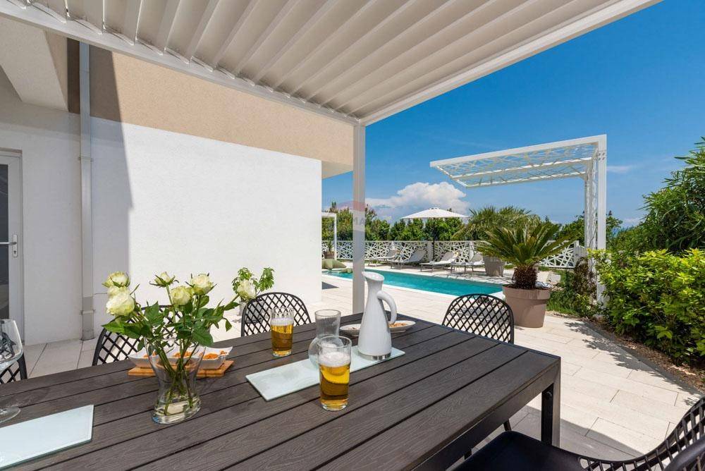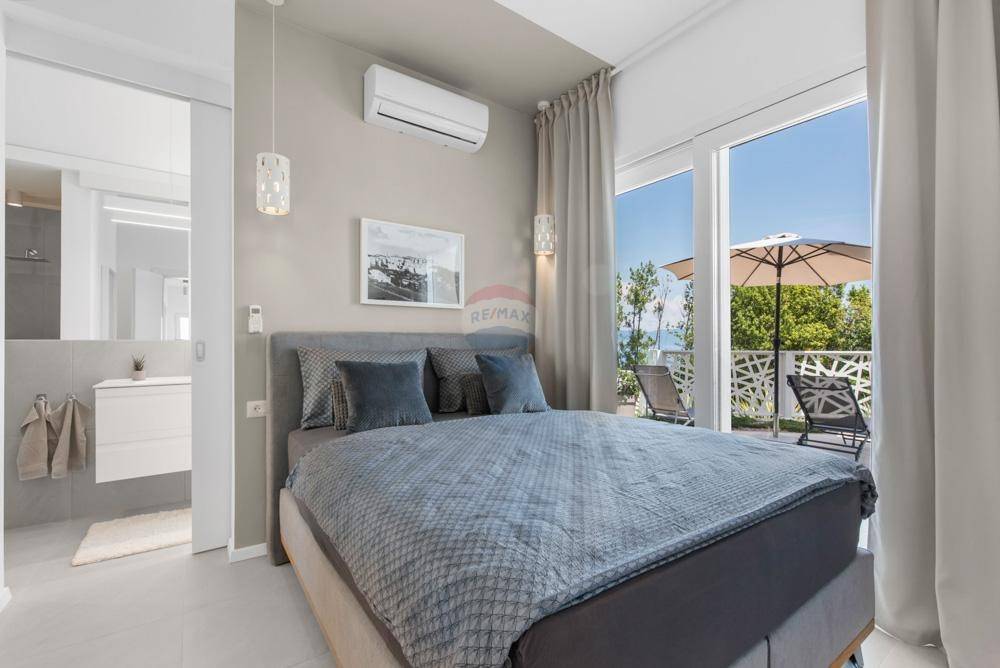 In one of the most beautiful locations with a beautiful view of the sea, we are selling a house with a total of 190 m2 of living space, and it is located on a plot of 560 m2. On the ground floor of the house there are three bedrooms, each with a bathroom and access to the terrace with a partial view of the sea, while on the first floor there is a modern kitchen, dining room and living room, as well as a bedroom with a separate bathroom. All rooms on the first floor offer a beautiful view of the sea.
