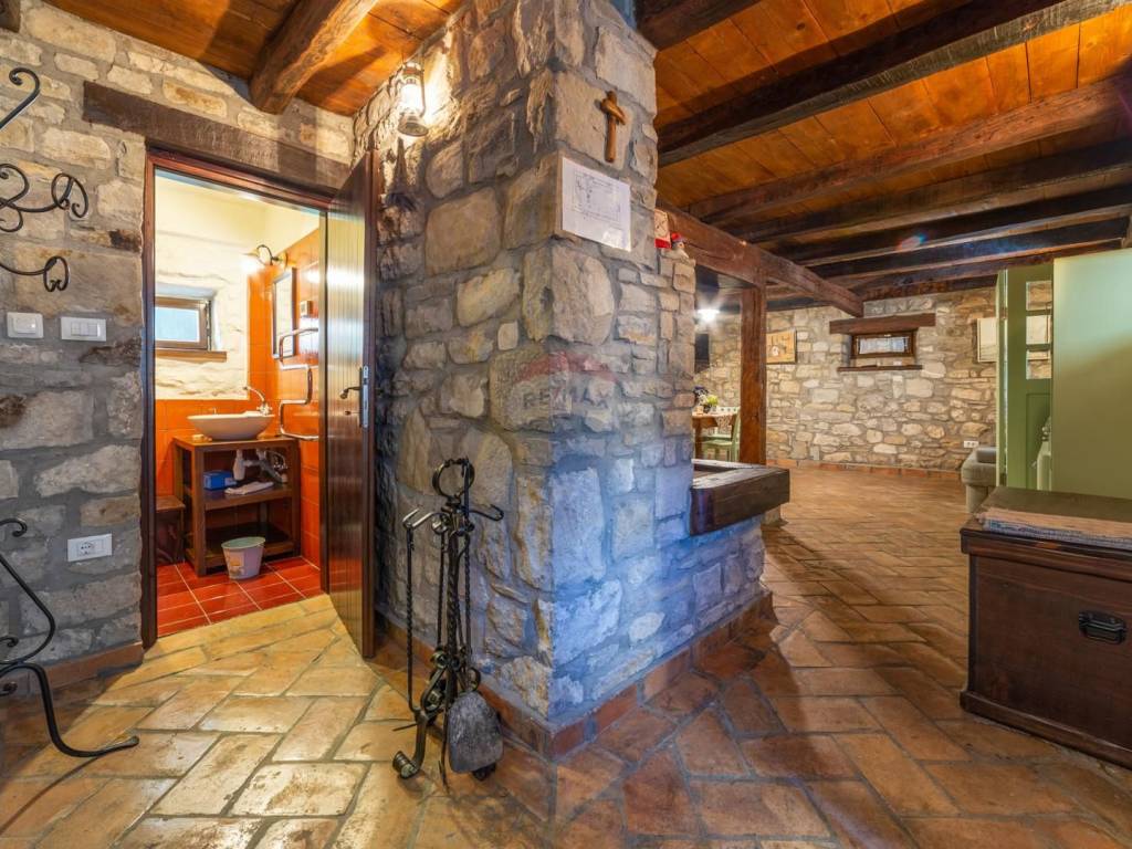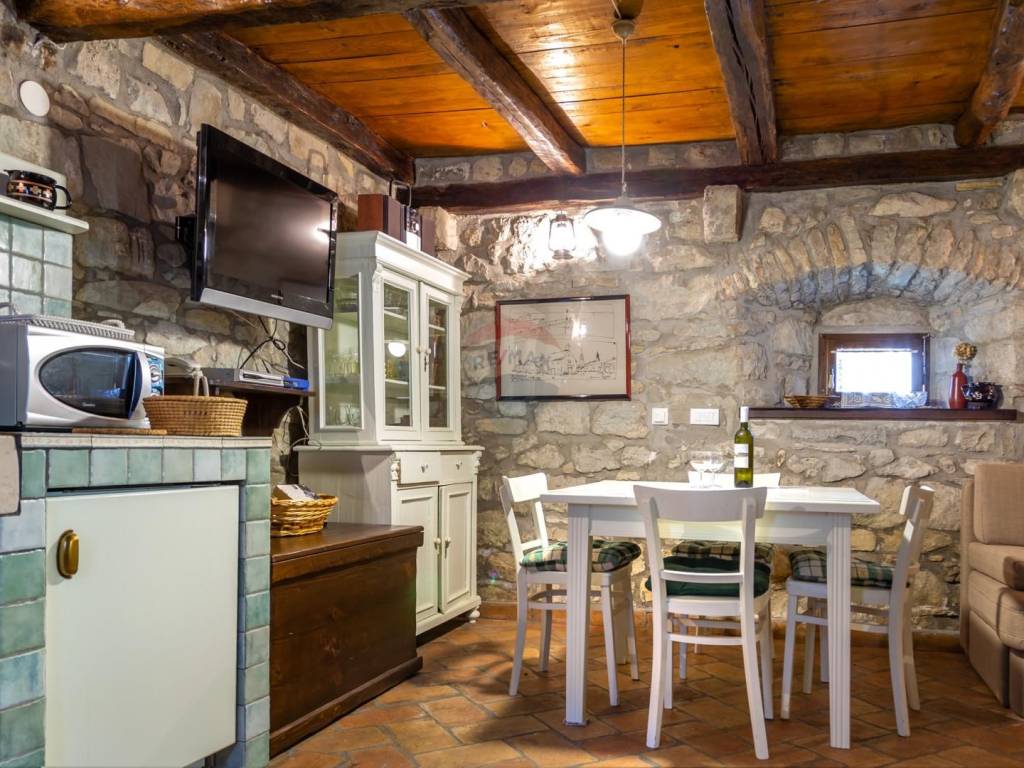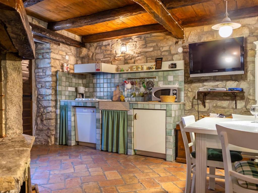These are three stone houses with a common enclosed yard in which the pool is located. They date from the 18th century, completely restored in 2010 decorated with wooden beams and authentic furniture and a multitude of historical details. Each comes with an open living room with fireplace, dining area and kitchen. There is underfloor heating, air conditioning, LCD satellite TV and dishwasher and all other possible facilities for modern living. The common yard with barbecue facilities is surrounded by a traditional stone wall and rich in Mediterranean plants. There, guests can relax on sun loungers by the pool. Local dishes can be served on site on request, and the nearest bar and restaurant serving Istrian specialties are 200 meters away. The nearest grocery store is 300 meters away.