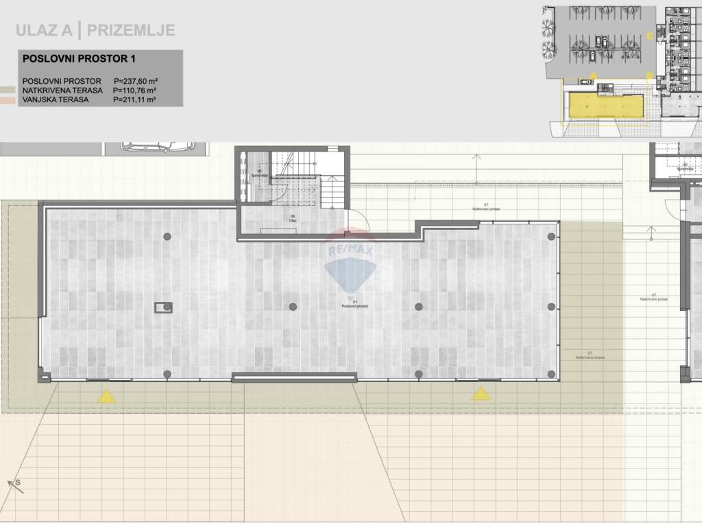 In the center of Labin, a commercial space of 237.60 m2 with associated terraces, a covered terrace of 110.76 m2 and an uncovered terrace of 211.11 m2 is for rent. Construction is planned until the end of 2025 and delivery in mid-2026. Ownership and documentation are in order.