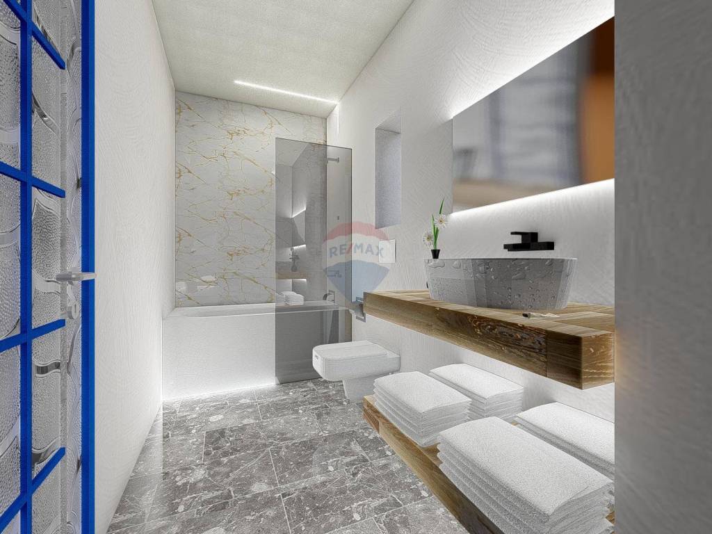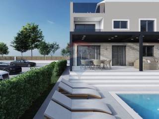 In the building there is a house in the vicinity of Porec with a living space of 170 m2 and a 500 m2 large garden for sale. The garden is located in an entrance hall, a flower bed, two dressing rooms, a storage room, a toilet, a kitchen with dining area, a large living room with access to a terrace and a swimming pool with sun terrace. In the first floor there are three bedrooms, one of the main bedrooms with access to the terrace, with a bathroom, the other bedroom has a shared bathroom. The roof area of 35 m2 can optionally be a further bedroom with bath or fitness center with whirlpool. The heating system is equipped with a heat pump and all the beds outside of the bedroom are equipped with a private bathroom. The house is suitable for family life as well as investment for tourist accommodation.