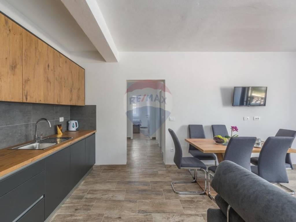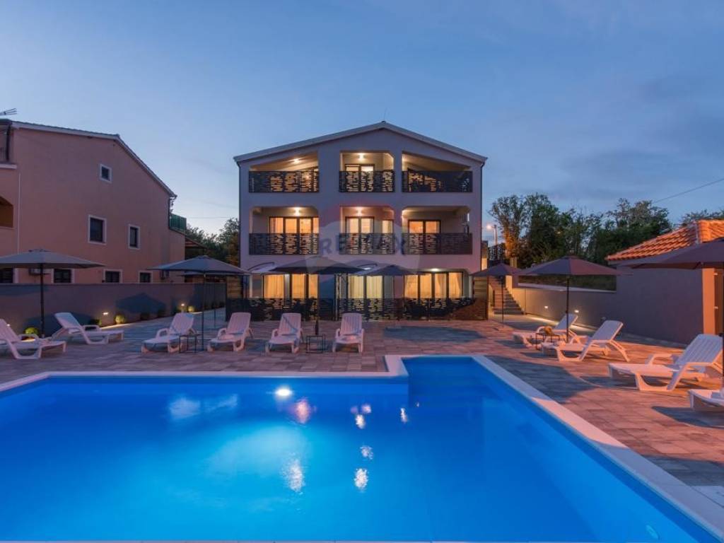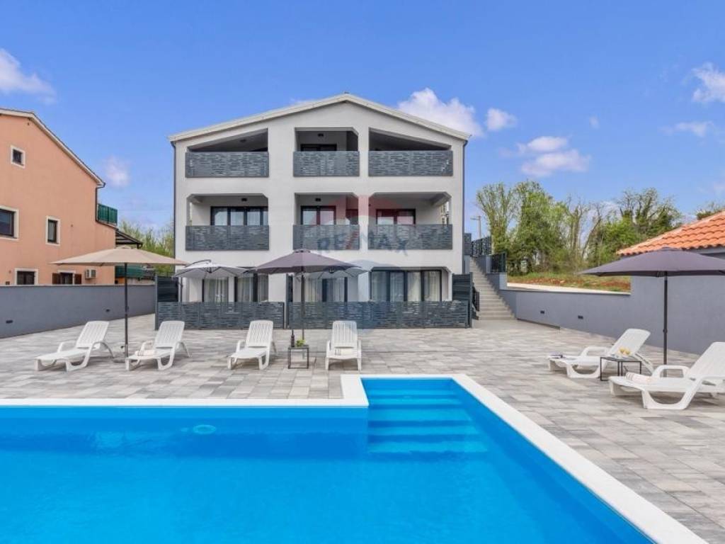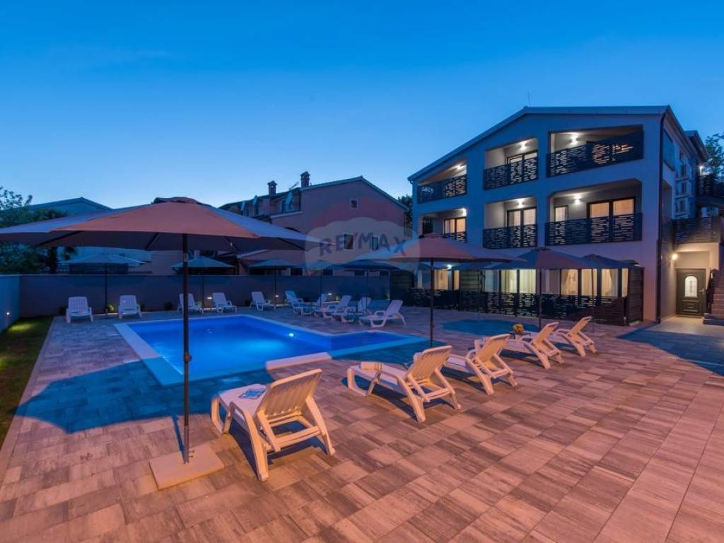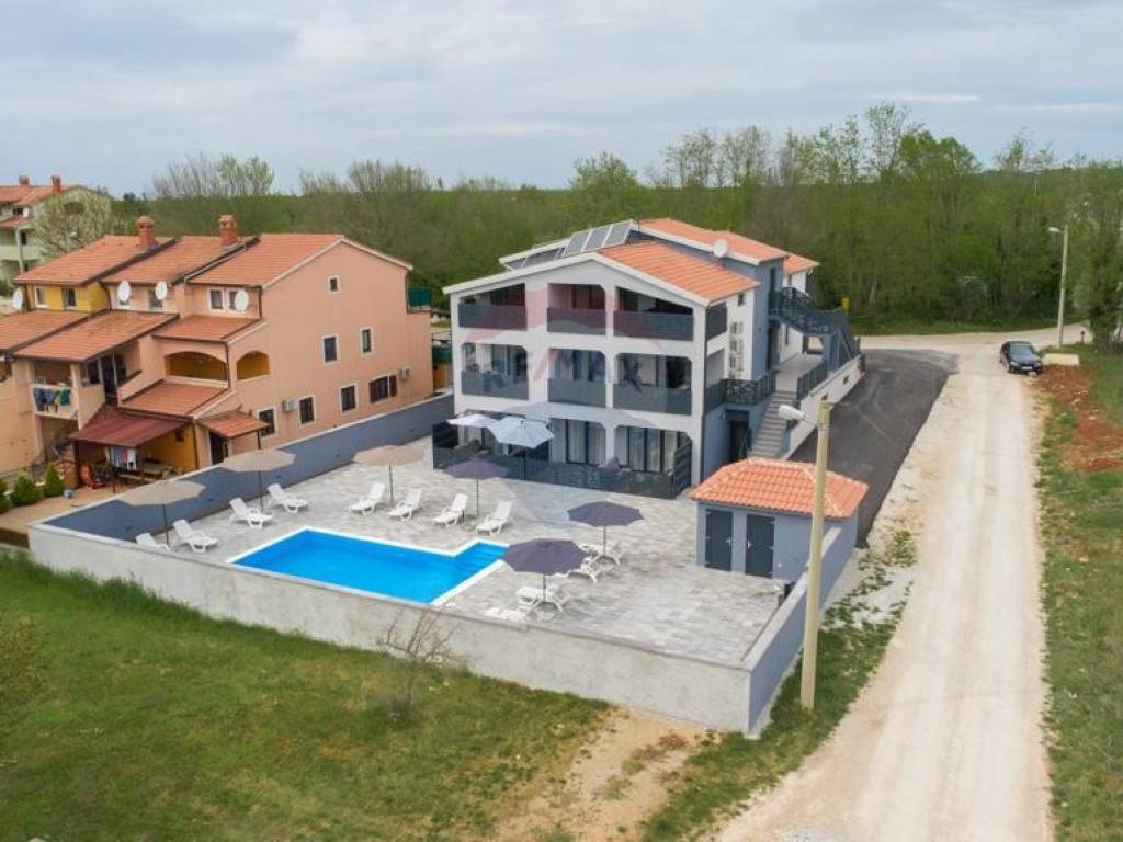 We are selling a modernly furnished apartment house with a gross area of 700m2 with 5 residential units. The house has a 700m2 garden. The 5 residential units are completely separate with their own electricity and water meters. In the basement of the house there are 2 apartments of 60m2 each and 2 studio apartments, and a laundry room of 40m2. On the first floor there are 3 apartments, 1 of which is 100m2 and 2 of 55m2 and also on the second floor. All apartments and the house are designer furnished and in all rooms there is an air conditioning unit for heating and cooling. The kitchens in all units are equipped with a dishwasher, large refrigerator, oven, electric stove, microwave oven and coffee maker. An optical internet device is installed on the house. In the yard there is a freshwater swimming pool and a sunbathing area. 10 parking spaces are provided on the garden. It was completely renovated and modernly decorated in 2020. The house is located in a great location, just a 10-minute drive from Poreč. The proximity of the Ypsilon ensures excellent connections to the entire Istria and beyond. This is a great opportunity for those who want to engage in tourism because not only real estate is for sale, but also an established rental business. More information on request. Guaranteed excellent profit!