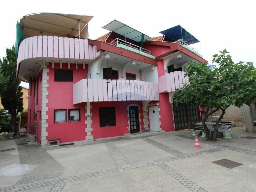 We are selling an apartment house with the potential for a boarding house. The house has an area of 400m2 + 229m2 terrace. The ground floor has a kitchen with dining room and living room, bedroom and bathroom, separate studio apartment with separate entrance. Upstairs are three bedrooms with bathrooms and summer kitchens, and a separate toilet. On the second floor there are four bedrooms with bathrooms and summer kitchens and a large terrace. There is an outside gazebo on the roof. The house is suitable for catering because a restaurant can be built on the ground floor and rooms for rent on the first floor