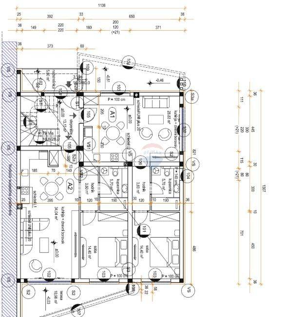 Remax Centar Nekretnina presents an apartment for sale on the ground floor of a new building, with a total area of 63 m². The living area is 58 m², and the terrace is 11 m², with half of the terrace included in the total square footage.