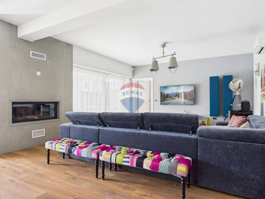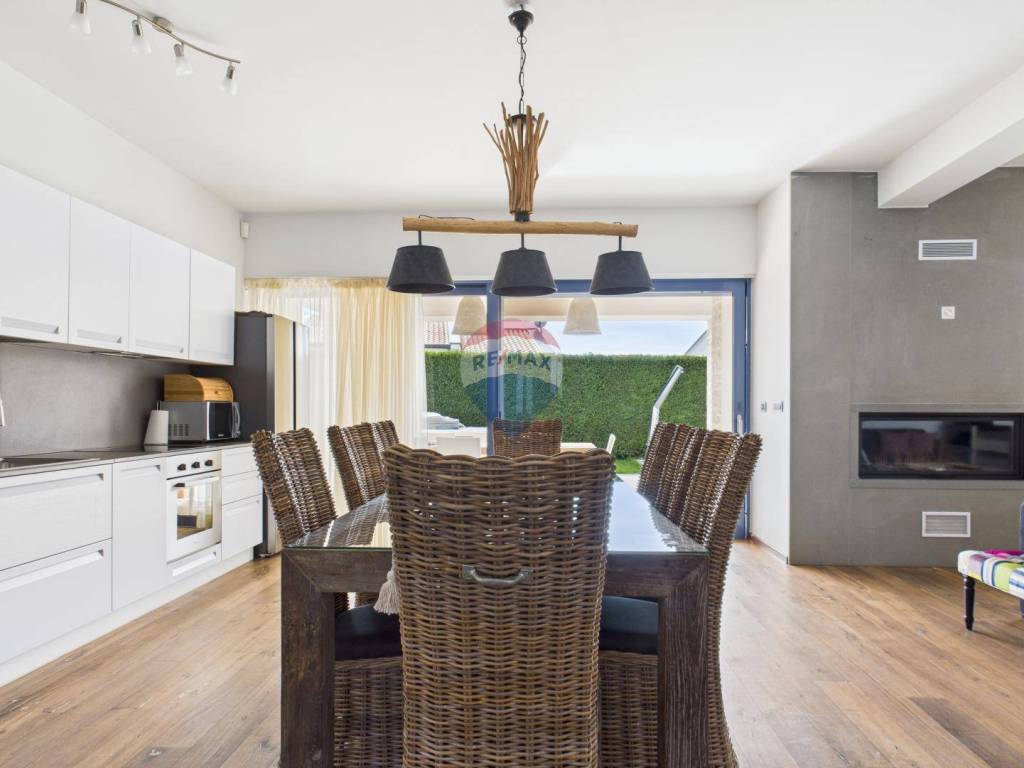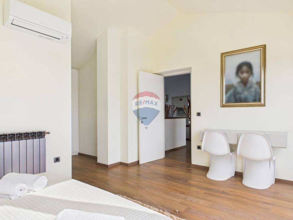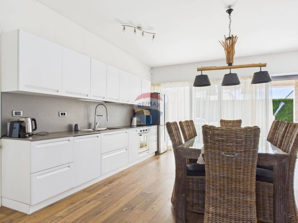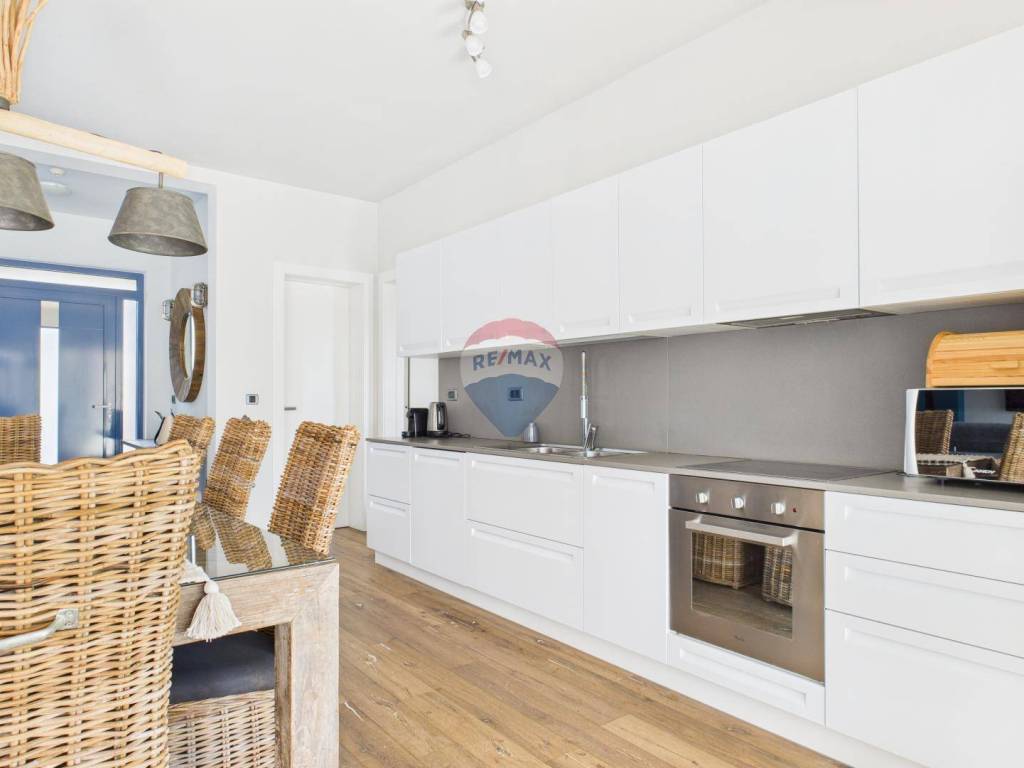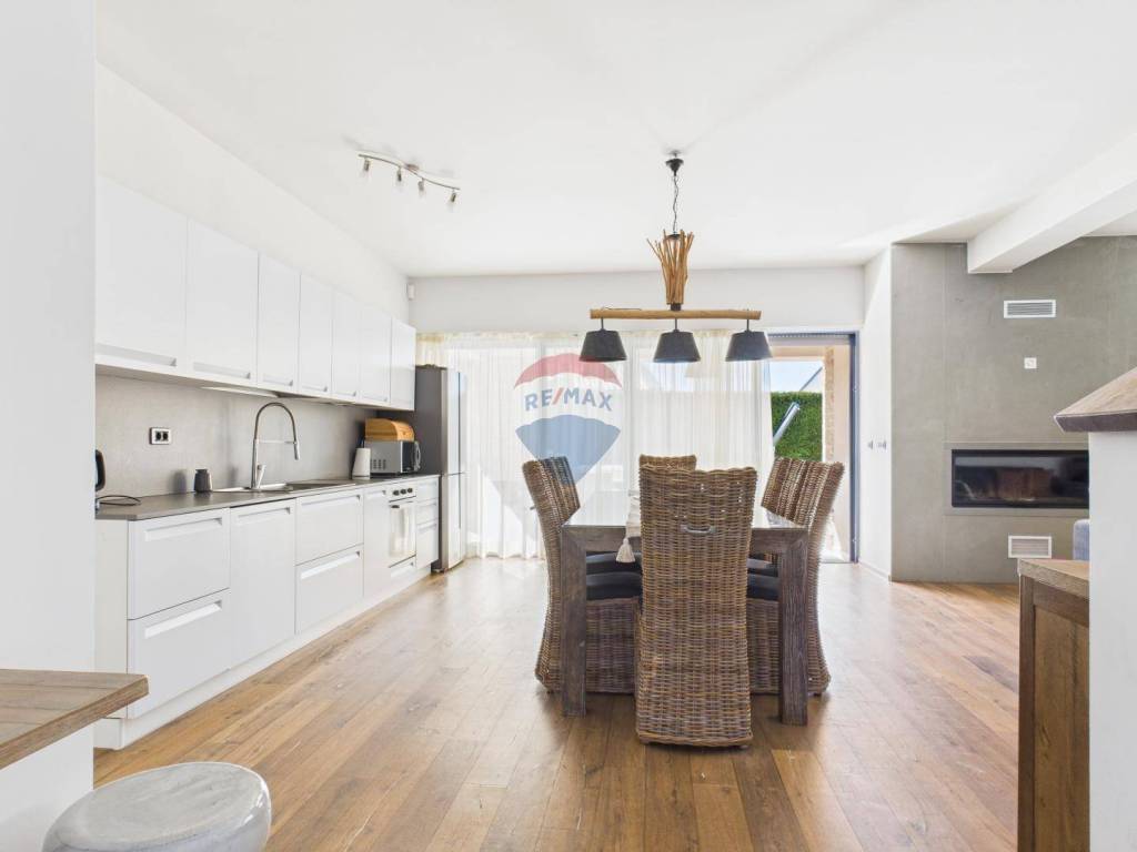 The house is full of natural light and features wooden floors, high-quality sanitary fittings, and aluminium joinery. The furniture is of excellent quality, giving the interior a modern and elegant look.