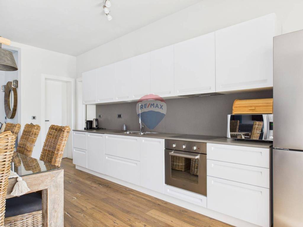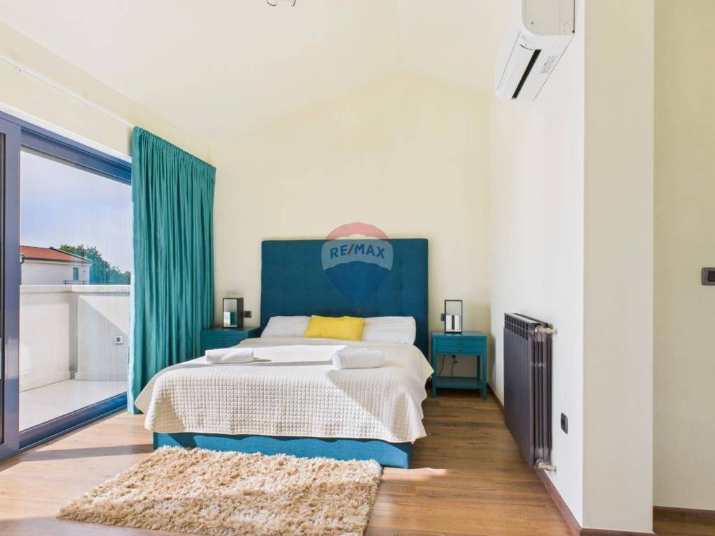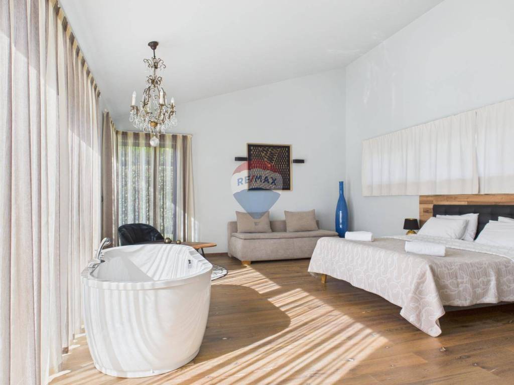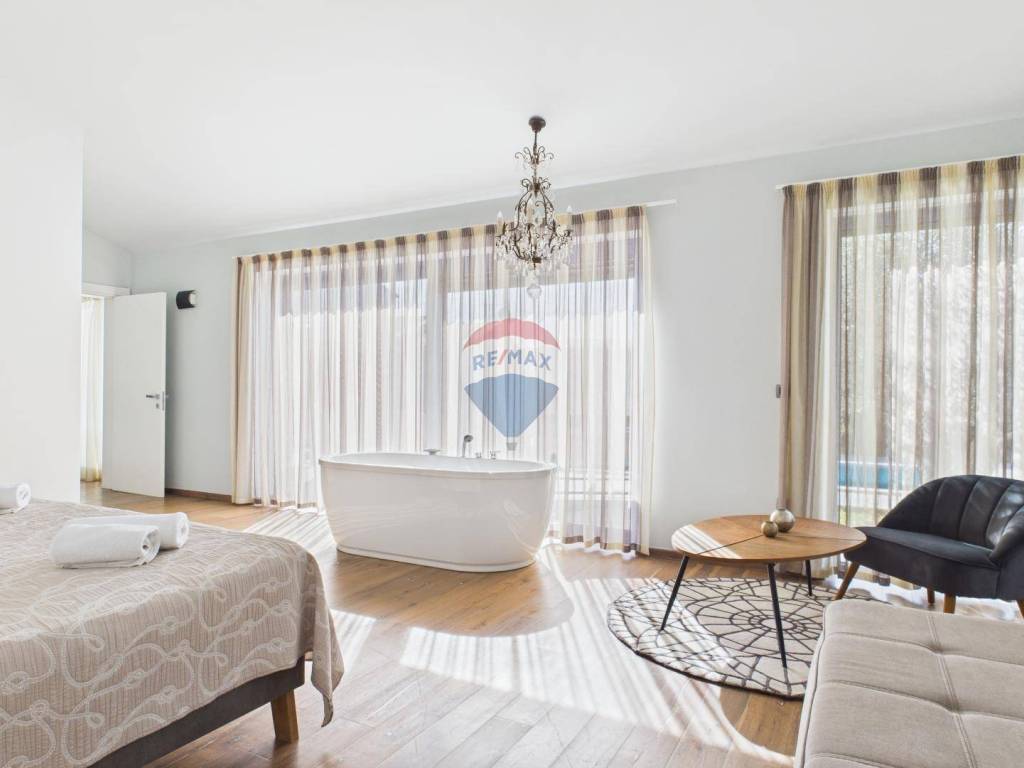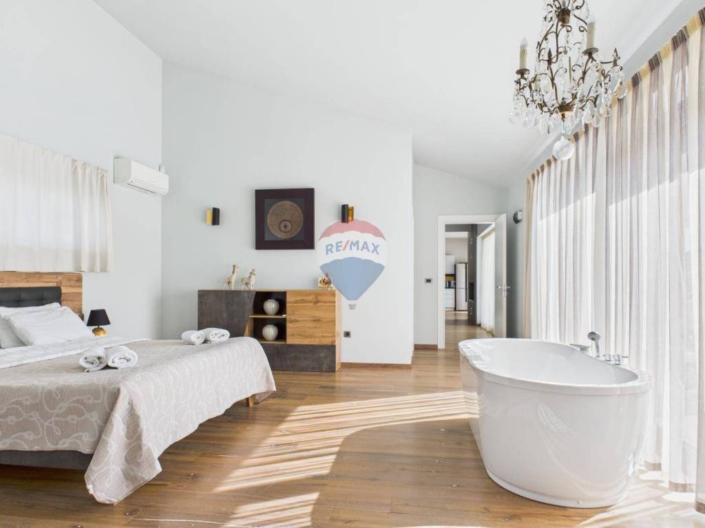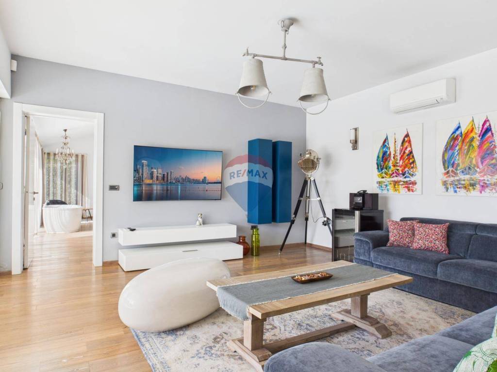 The house is full of natural light and features wooden floors, high-quality sanitary fittings, and aluminium joinery. The furniture is of excellent quality, giving the interior a modern and elegant look.