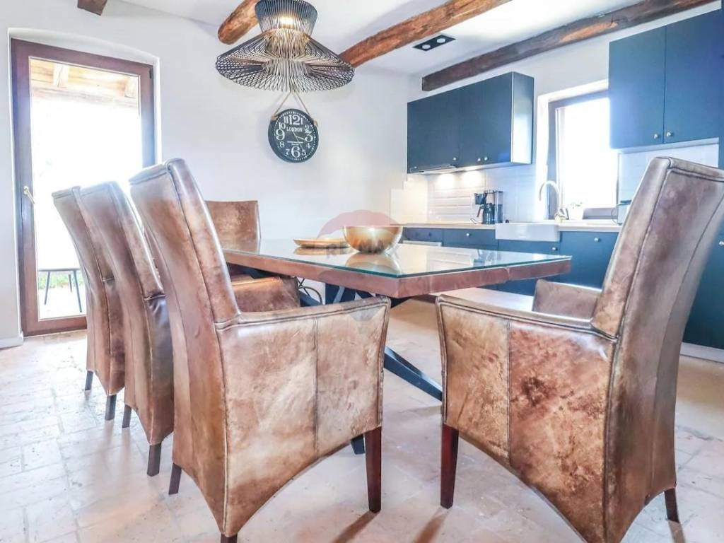 We present a charming stone house only 2 km from St. Lovreč, located on the outskirts of a smaller nearby town in a nature-rich environment. The house was built in the Istrian style, with a lot of stone and wooden elements, keeping the original autochthonous way of construction. To make the impression as original as possible, the terrace was built in the style of the old Istrian ballad. The house is located on a plot of 650 m2, and in front of it is agricultural land, so that the openness of the view towards the endless natural green expanses will not be disturbed in the future either. The house consists of a ground floor, where there is a living room, dining room, dining room, kitchen, bedroom, bathroom, storage room, guest toilet. A stylized staircase leads to the 1st floor, where there are 3 bedrooms, two bathrooms. One room opens onto a terrace with open and beautiful views of the surrounding green areas. The owners built the house for themselves, and it is evident with how much love they chose every detail in the house. There is one air conditioner in each room. The house is sold fully furnished, with very high-quality and beautiful furniture. The yard is dominated by a large swimming pool, there is also a carport for several vehicles, and on the side of the house, next to the covered terrace, there is a stone masonry fireplace, to enjoy socializing on warm days. Behind the house is a garden shed for storing all your necessities.