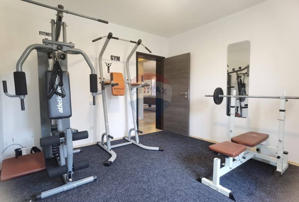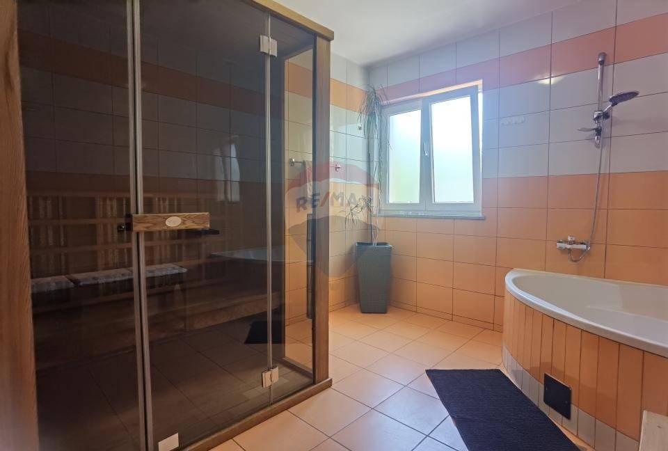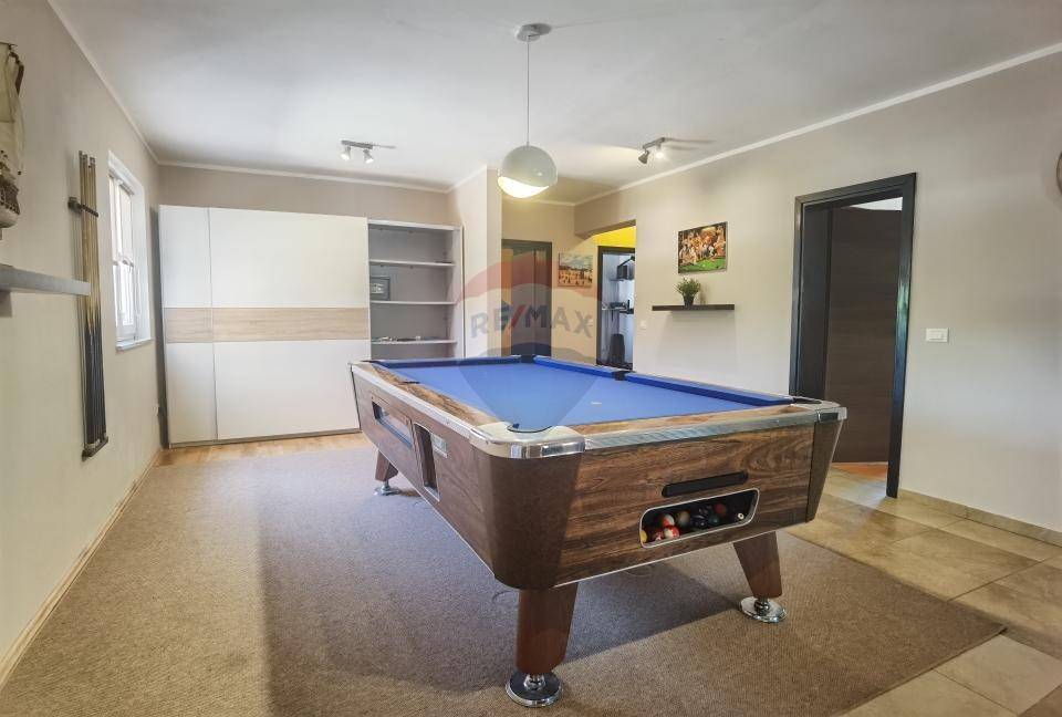 A special feature of the ground floor are the additional amenities – a spacious entertainment room with billiards, darts and other facilities, a children's playroom, a fitness room, and a sauna.