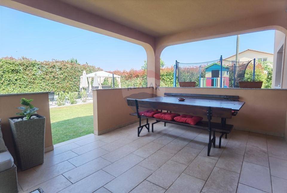 In the fully fenced yard there is a pool, jacuzzi, barbecue, children's playground, and a landscaped sunbathing area.