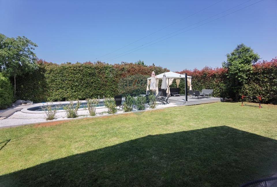 The newly built house has a net area of 299 m² and a gross area of 360 m², spread over two floors, and is located on a plot of 1030 m².
