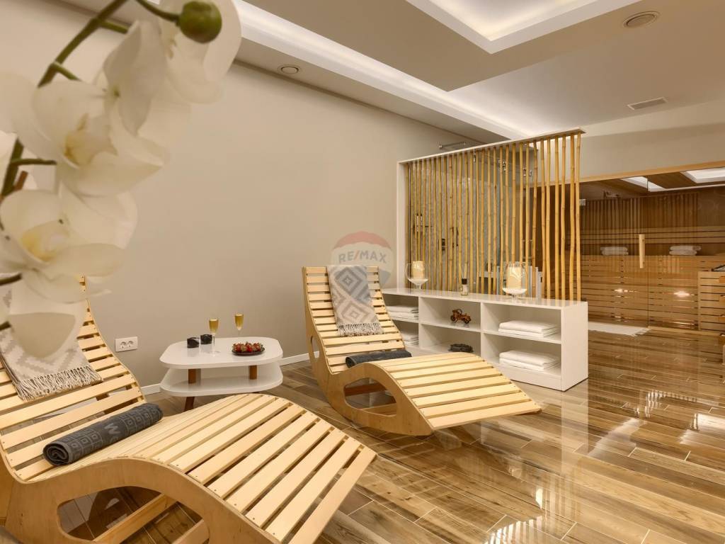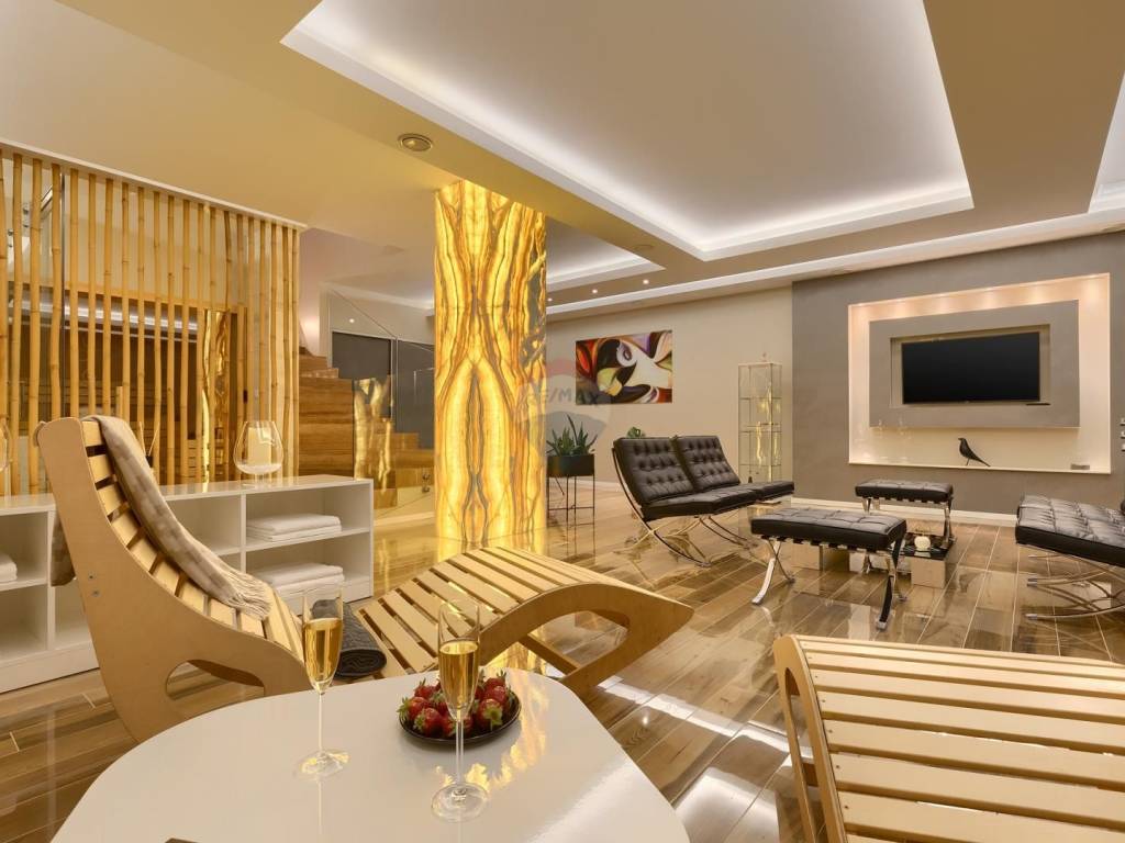 In the basement of the villa there is a wellness area with a sauna. Wellness is decorated with precious onyx. In the alternative, they say that the onyx brings positive energy to the proctor. The villa provides a great atmosphere for relaxation.