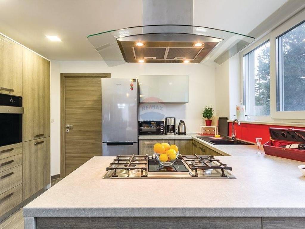 On the well-arranged and spacious 770 m² plot, there is a 30 m² pool with an additional hot tub, as well as an additional 40 m² game room that includes billiards, darts and other board games, an outdoor kitchen, playroom, gym, fireplace and barbecue.