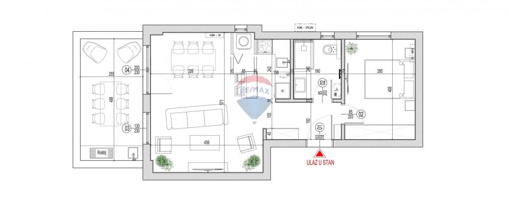 The apartment is 57 m2 and consists of: bedroom, living room with kitchen and dining area, bathroom, hallway, laundry room and a spacious terrace with a sea view (with preparation for a summer kitchen; electricity and water).