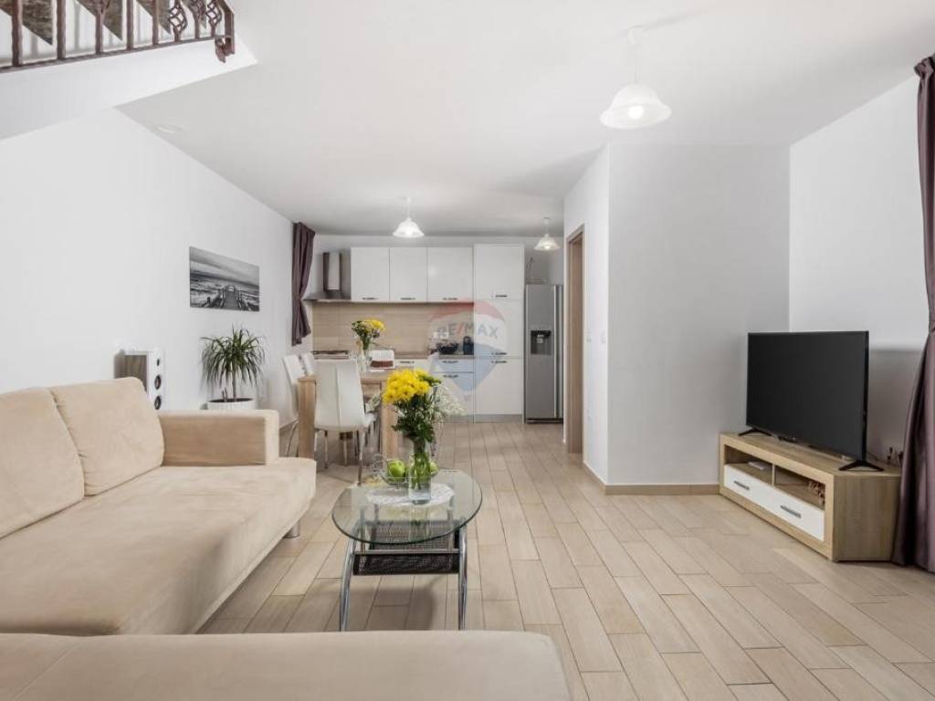 It is a recent construction (built in 2015), and is designed as a two-story apartment connected by an internal staircase.