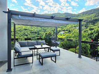 Brseč - Remax Centar Nekretnina offers a nice small house with a 350 m2 garden in a quiet environment overlooking the forest. The house consists of a basement, ground floor and first floor that are not connected, but there is a possibility of internal stairs from the ground floor to the first floor. In the basement there is a storage room and a tavern which is currently decorated as a recreation area. On the ground floor there are two bedrooms, a bathroom, a living room with a kitchen and dining room and a balcony, and on the first floor there is a sauna and a large terrace with a jacuzzi overlooking the forest and greenery. Air conditioning is used for heating and cooling, and parking is provided within the garden, which also has a children's playground. The house has been completely renovated, and the furniture is by agreement.