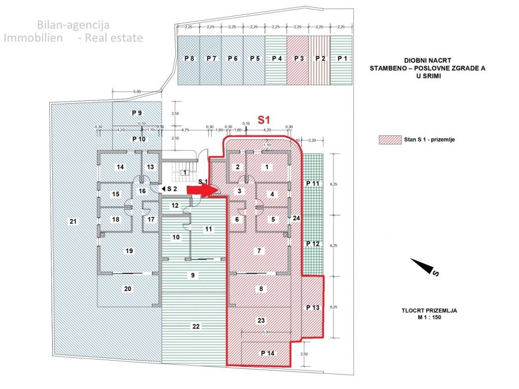 Apartment for sale located on the ground floor of the building. The apartment consists of 3 bedrooms, 2 bathrooms, kitchen-dining room-living room, hallway and terrace. The apartment has a garden of 55 m2 and 2 parking spaces. The total and actual area of all of the above is 174.94 m2.