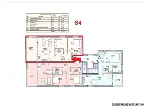 Apartment for sale marked TS-S4, located on the first floor of a building consisting of a ground floor and three floors, a total of 8 apartments.