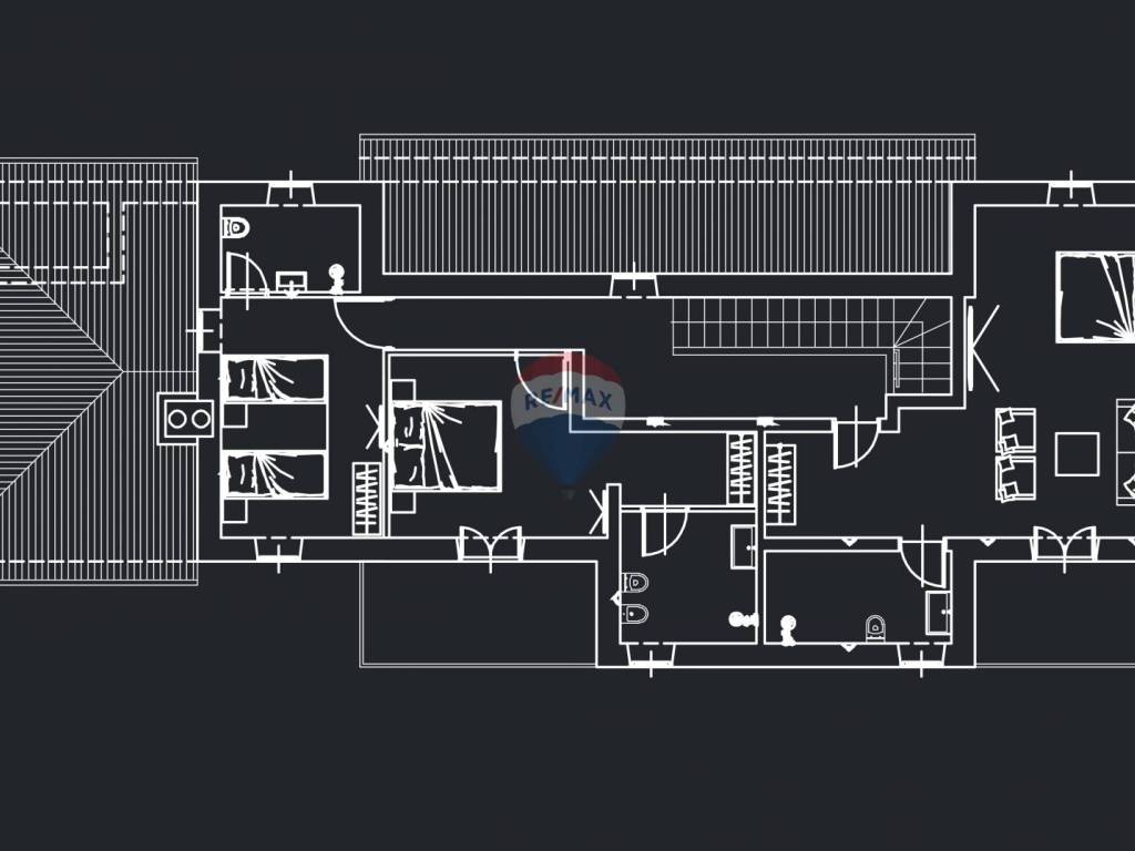 The house is equipped with underfloor heating and is fully air-conditioned. The yard is dominated by a large 11 x 4.6 m swimming pool equipped with a hydromassage, a summer kitchen and a small bathroom.